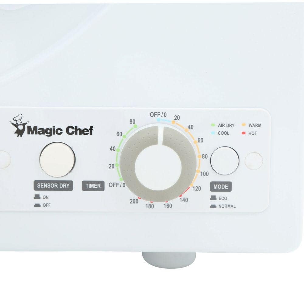 Lighten up laundry day with this Magic Chef compact 2.6 cu. ft. compact, vented electric dryer. Perfect for apartments, dorms and vacation homes, you can mount it on a wall or place it on a countertop to save space. It’s equipped with two temperature settings for proper fabric care. This dryer has an ECO Mode and Sensor Dry Selector for energy efficiency and uses a standard 110 V outlet.