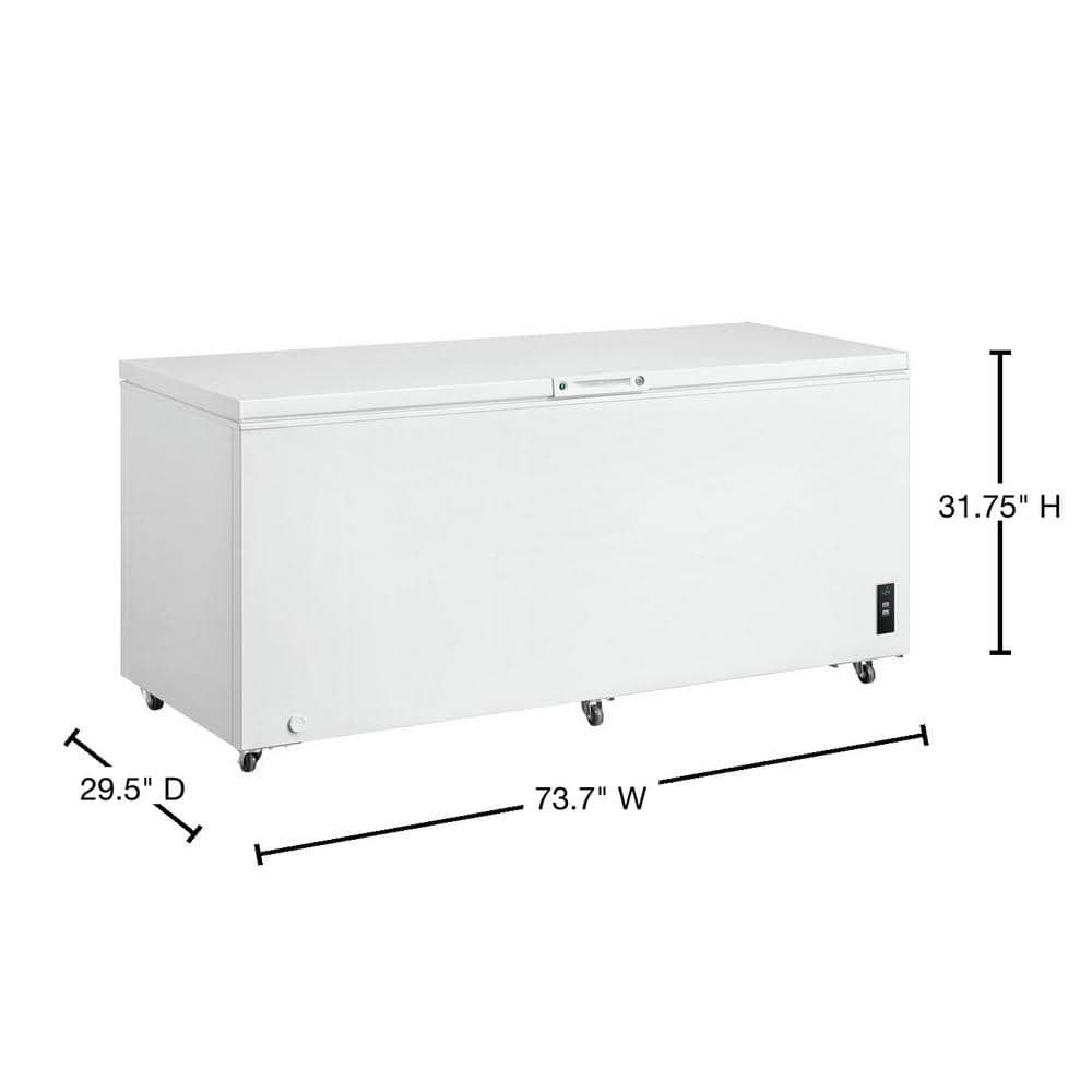 The Frigidaire 20 cu. ft. Chest Freezer offers more storage so you can stock up on frozen foods. Take organization to the next level with our heavy-duty sliding plastic basket with color-coordinated clips that Snap-On and can be used to organize items by categories or purchase date so items are much easier to find, and the Exterior Dial Temperature Control is easy to reach and operate. Bright lighting makes it easy to see what’s inside.