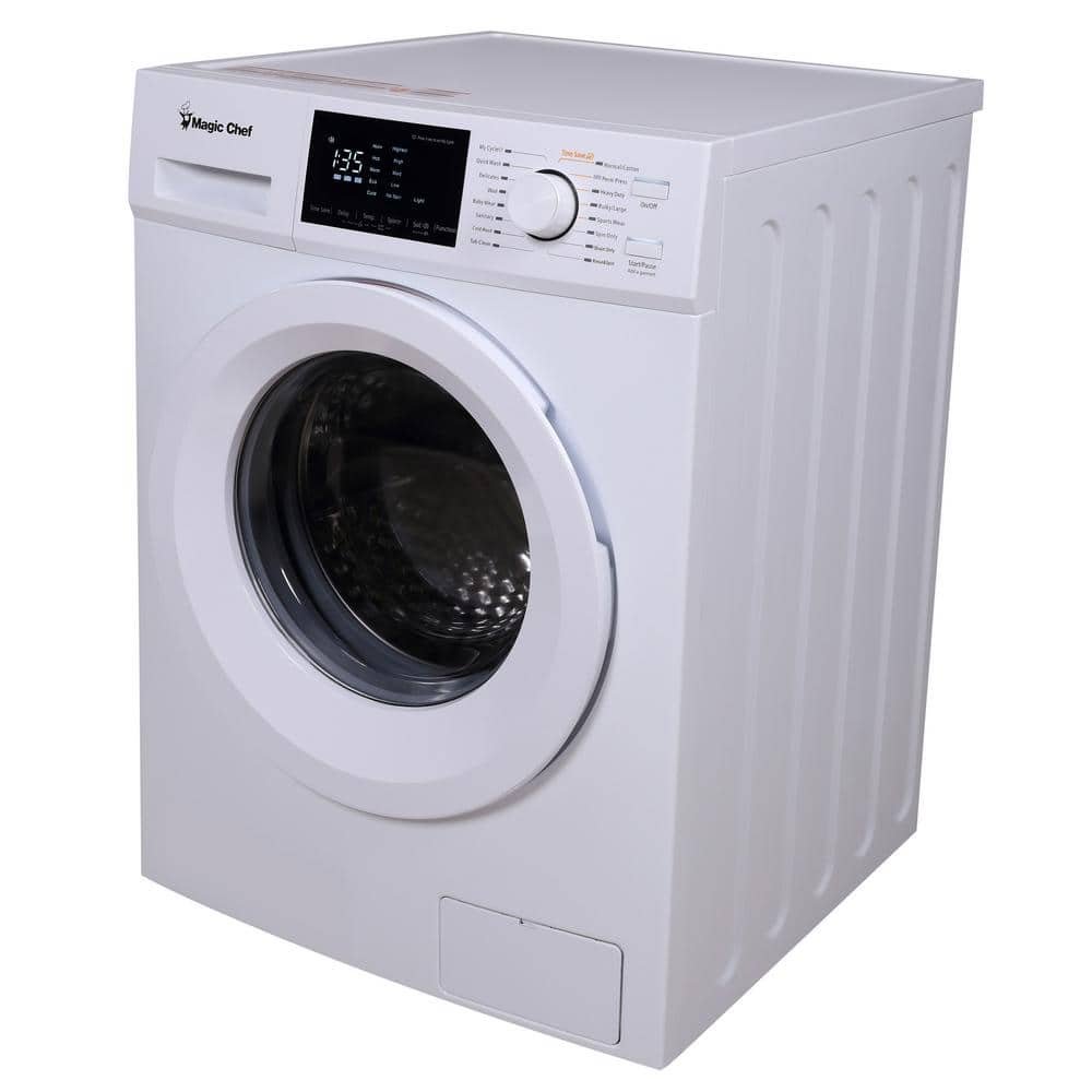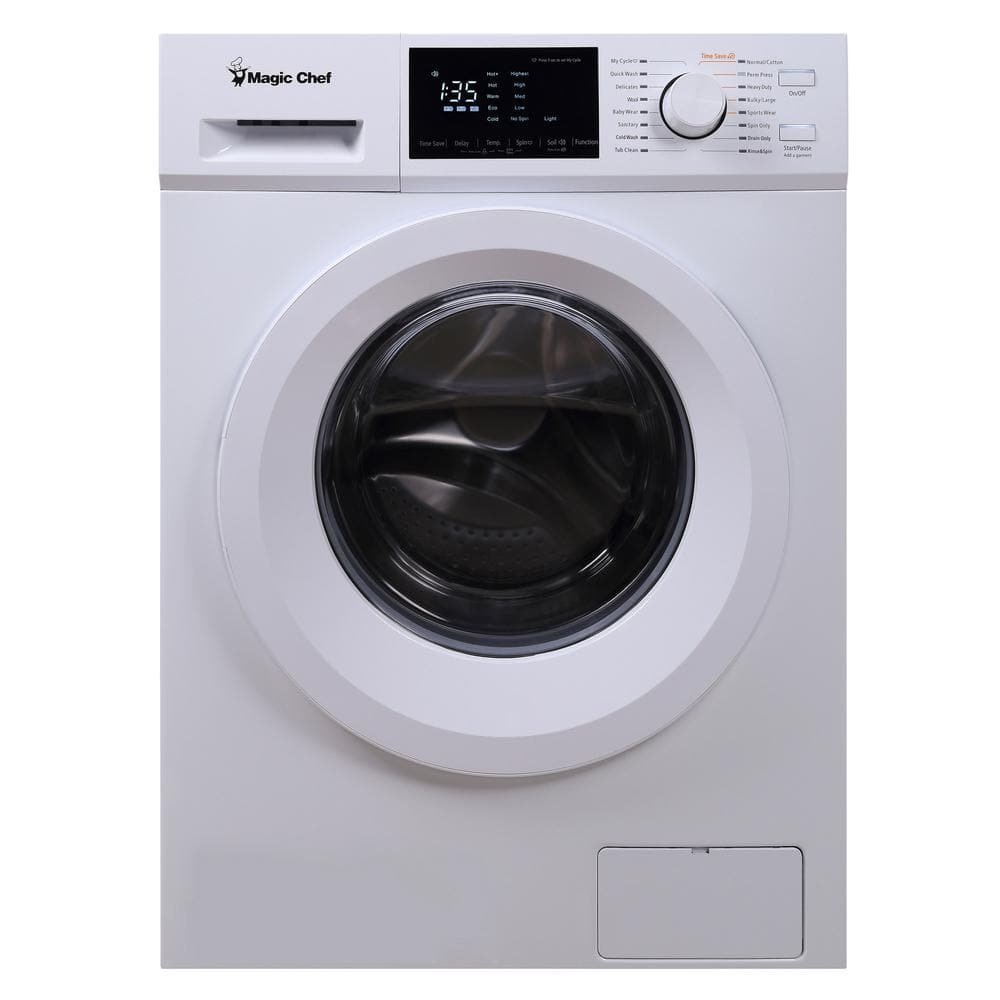The Magic Chef 2.7 cu. ft. Washer makes laundry day easy. Perfect for limited spaces, including apartments and vacation homes, this versatile front load unit boasts 16 total cycles, including delicate, heavy-duty, normal, active wear and sanitary. Five wash/rinse cycles, along with 5 spin speeds give your garments the proper care they deserve. It is a great solution when space is limited.