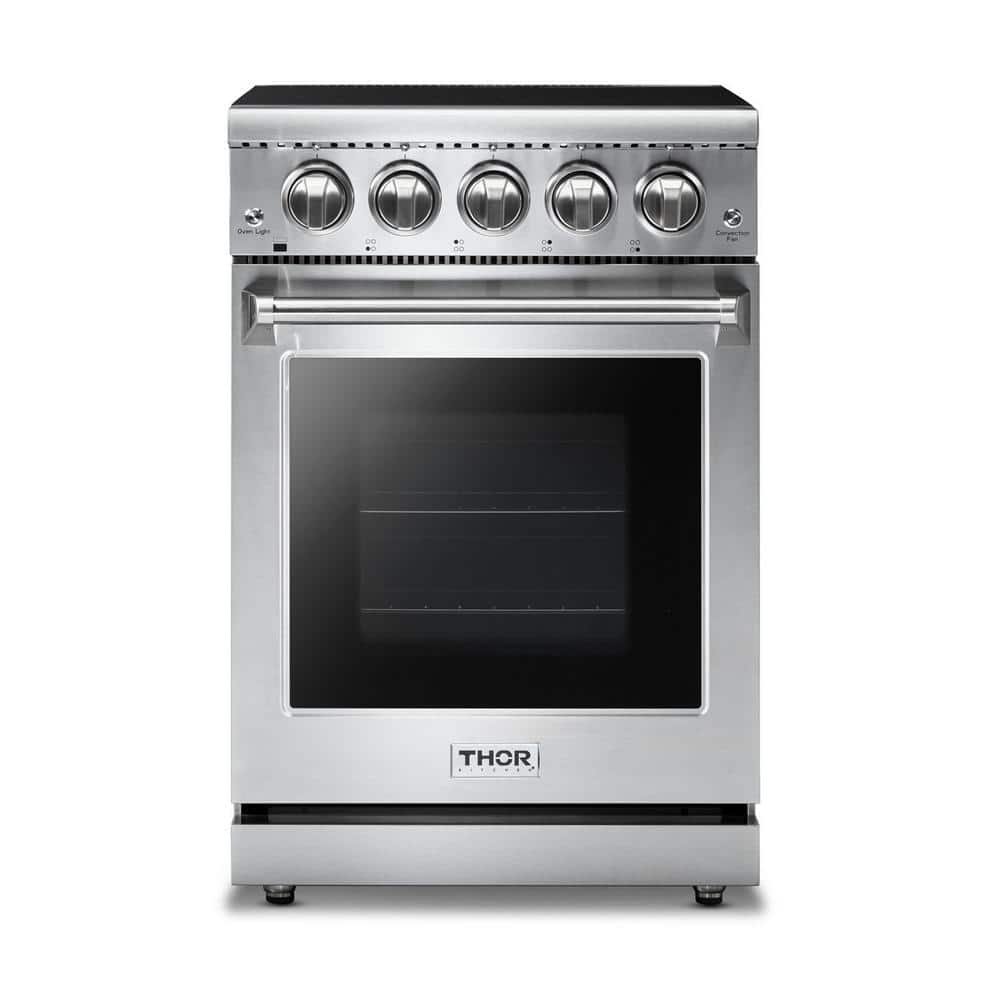 The THOR Kitchen 24 Inch Professional Electric Range is a stainless-steel machine that is designed with powerful features and functionality. This range features a smooth glass top that is easy to clean and four heating element zones that give you the ultimate cooking flexibility. From a 1200W single burners to a high-powered 2,200W dual heating element, this range gives you the power to master any meal. #cooklikeagod