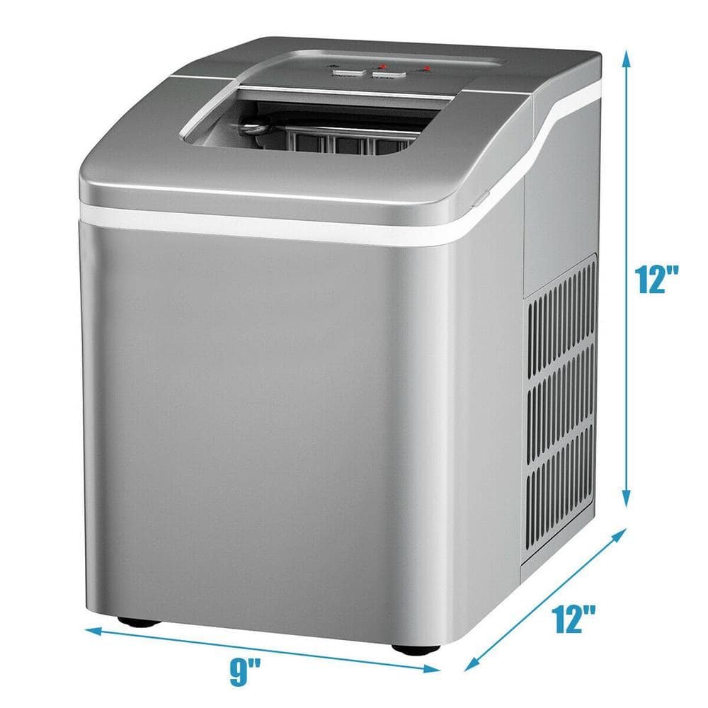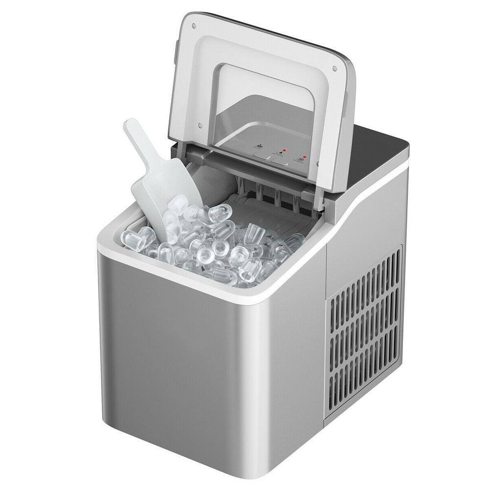 26 lb. Portable Ice Maker in Silver with Ice Scoop and Detachable Basket