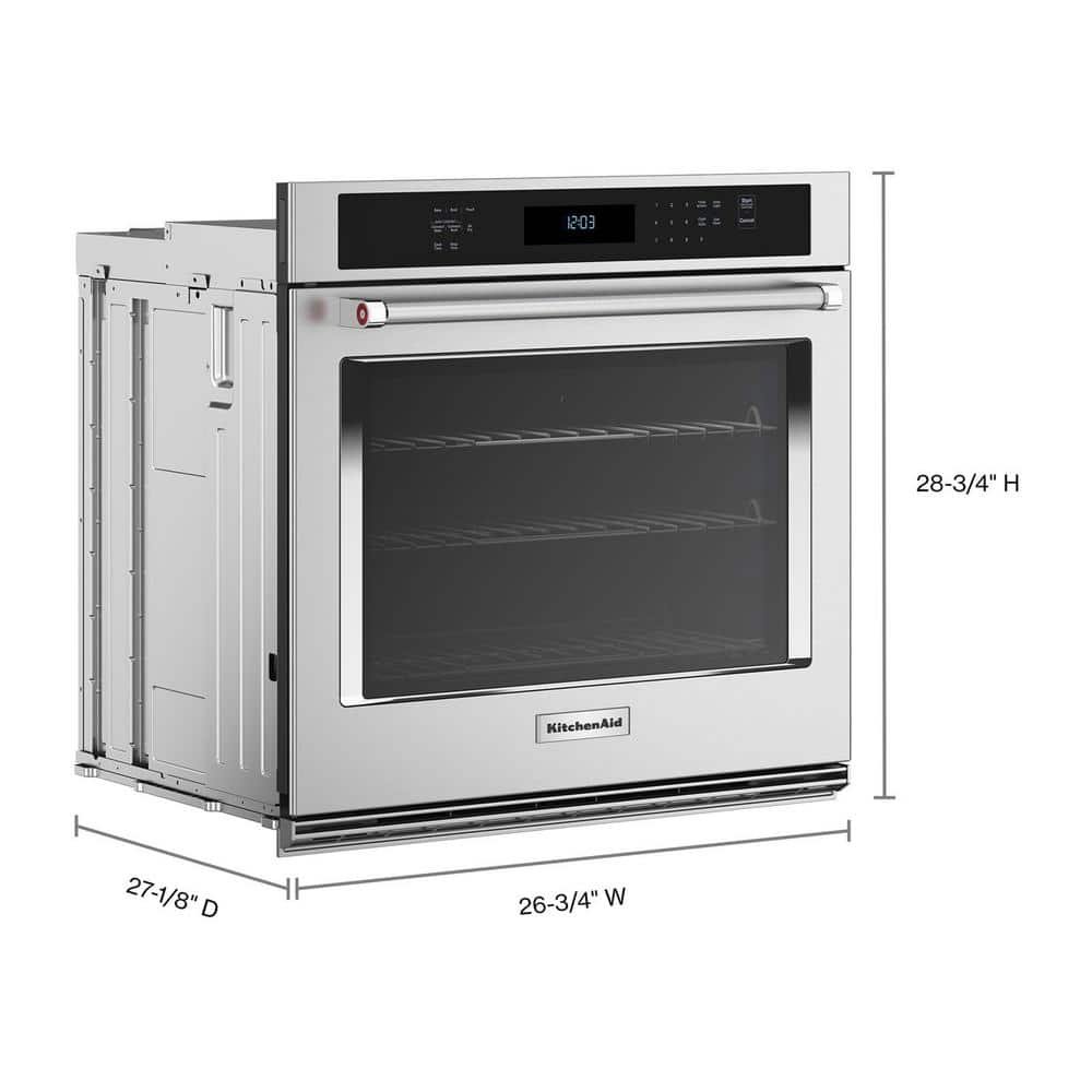 Crisp and brown with less oil and less hassle. KitchenAid Single Wall Ovens with Air Fry Mode include a dishwasher-safe air fry basket with plenty of capacity for large batches. A built-in thermometer takes the guesswork out of cooking meat, fish, poultry, casseroles and more to the perfect degree of doneness every time. When compared to deep frying.