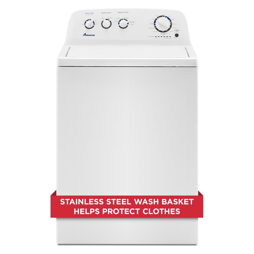 Make laundry day easier with an Amana large capacity top load washer. The agitator hits dirt hard, while a smooth Stainless Steel Wash Basket helps prevent snagging. The Automatic Fabric Softener Dispenser releases softener right on time, and the Quick Wash Cycle gets loads done fast. Plus, the Deep Water Wash Option delivers the maximum amount of water for loads.