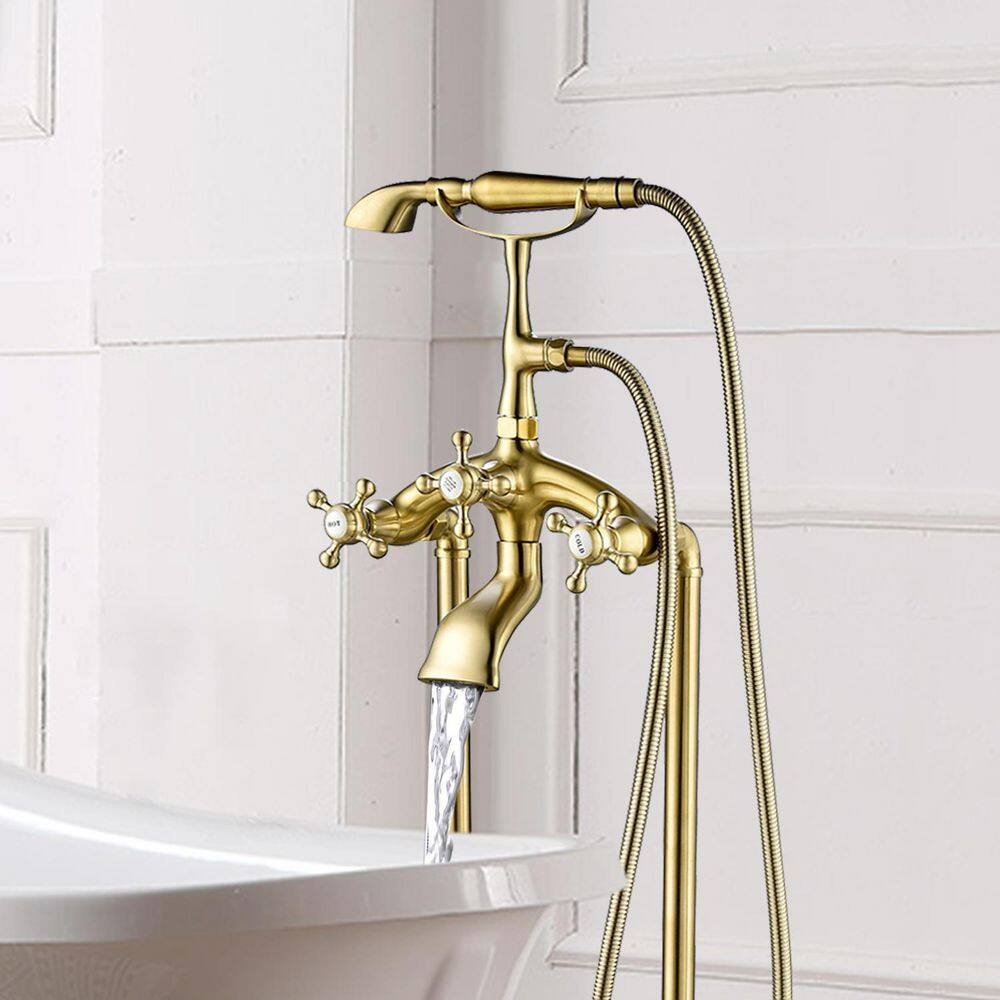 This faucet brings art to life in the form of a full-size freestanding claw foot bathtub floor faucet.Freshen up your bathroom with this three-handle freestanding floor-style claw-foot bathtub faucet filler and chrome phone hand-held shower.Our products give you absolute quality assurance,and adhere to the basic purpose of serving customers wholeheartedly,to give you a satisfactory shopping experience.