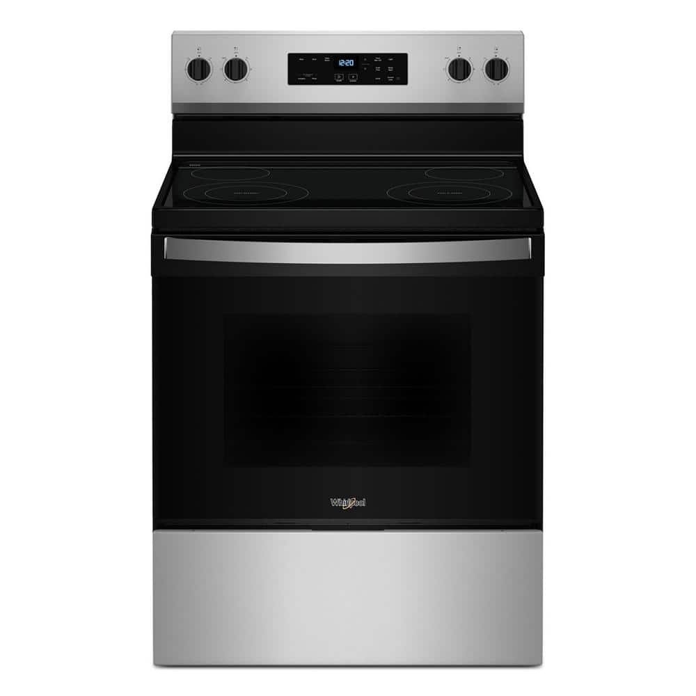 Make the most of your time in the kitchen with this Whirlpool 30 inch electric range, featuring dual electric burners and No Preheat Mode. This 5.3 cu ft conventional oven with Broil helps you add a toasty twist or melty magic to family classics, and features a built-in temperature sensor to help the oven Bake evenly. Plus, boil 40% faster* with two FlexHeat Dual Radiant Elements. *When comparing the 9″” element to the 6″” element on the same unit.
