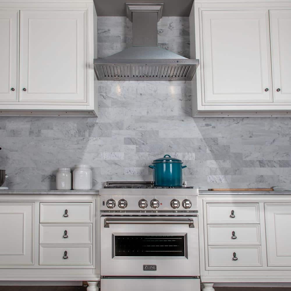 The ZLINE 8KBS-30 is a 30 in. professional wall mount DuraSnow stainless steel range hood with a modern design and built-to-last quality, making it a great addition to any kitchen. This hood’s high-performance, 400 CFM 4-speed motor will provide all the power you need to quietly and efficiently ventilate your stove while cooking. ZLINE’s exclusive DuraSnow stainless steel is a non-directional, smudge-resistant finish that contains rust, temperature, and corrosion-resistant properties to ensure a durable vent hood that will last for years to come. Enjoy modern features, including built-in LED lighting for an illuminated culinary experience and dishwasher-safe stainless steel baffle filters for easy clean-up. This wall mount range hood has a convertible vent, so you can have a luxury range hood whether you need a ducted or ductless option. Experience Attainable Luxury in the heart of your home, with a ZLINE range hood. ZLINE Kitchen and Bath stands by all products with its manufacturer parts warranty. The 8KBS-30 ships next business day when in stock.