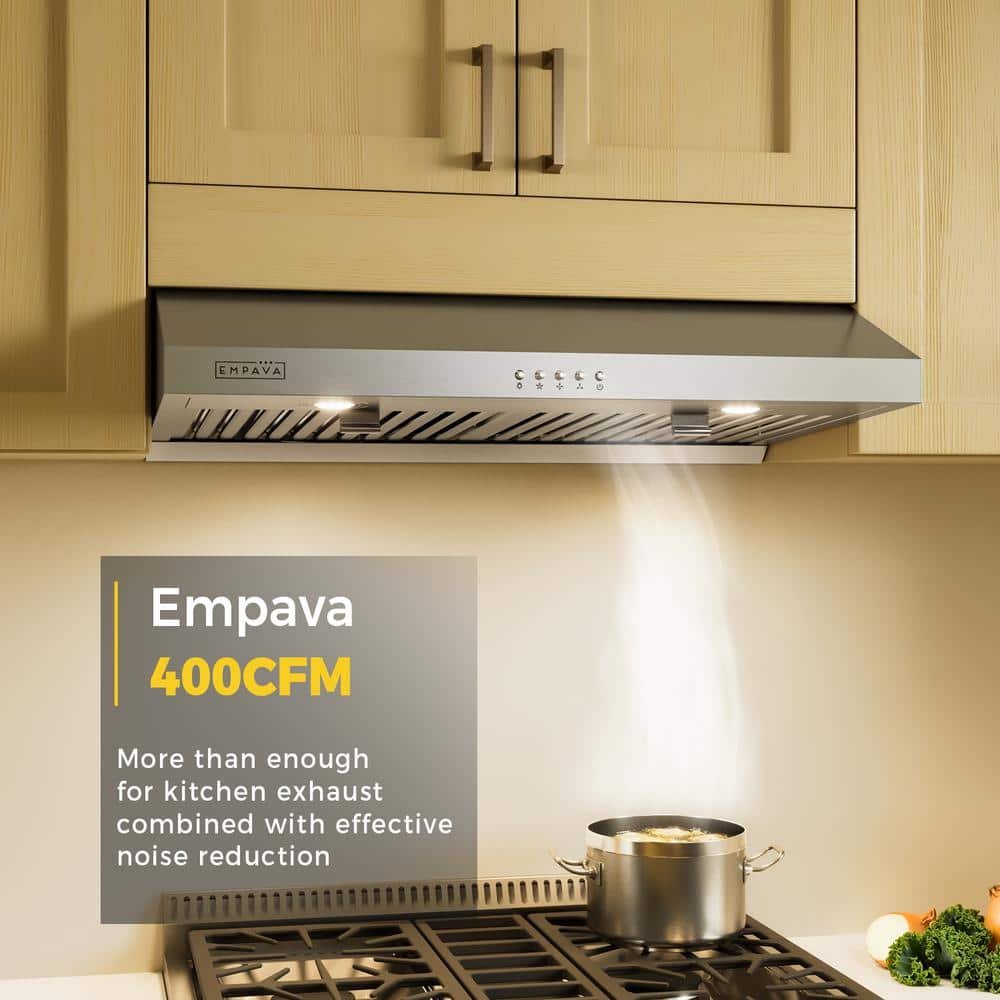 Give your kitchen an upgrade with this 30 in. 400 CFM ducted under-cabinet range hood. It adds a modern touch to your home with a stainless steel design and a dual motor so your kitchen stays smoke and odor free. It has two LEDs to light your cooking space and it ft. s easy to clean with a dishwasher-safe stainless steel filter.