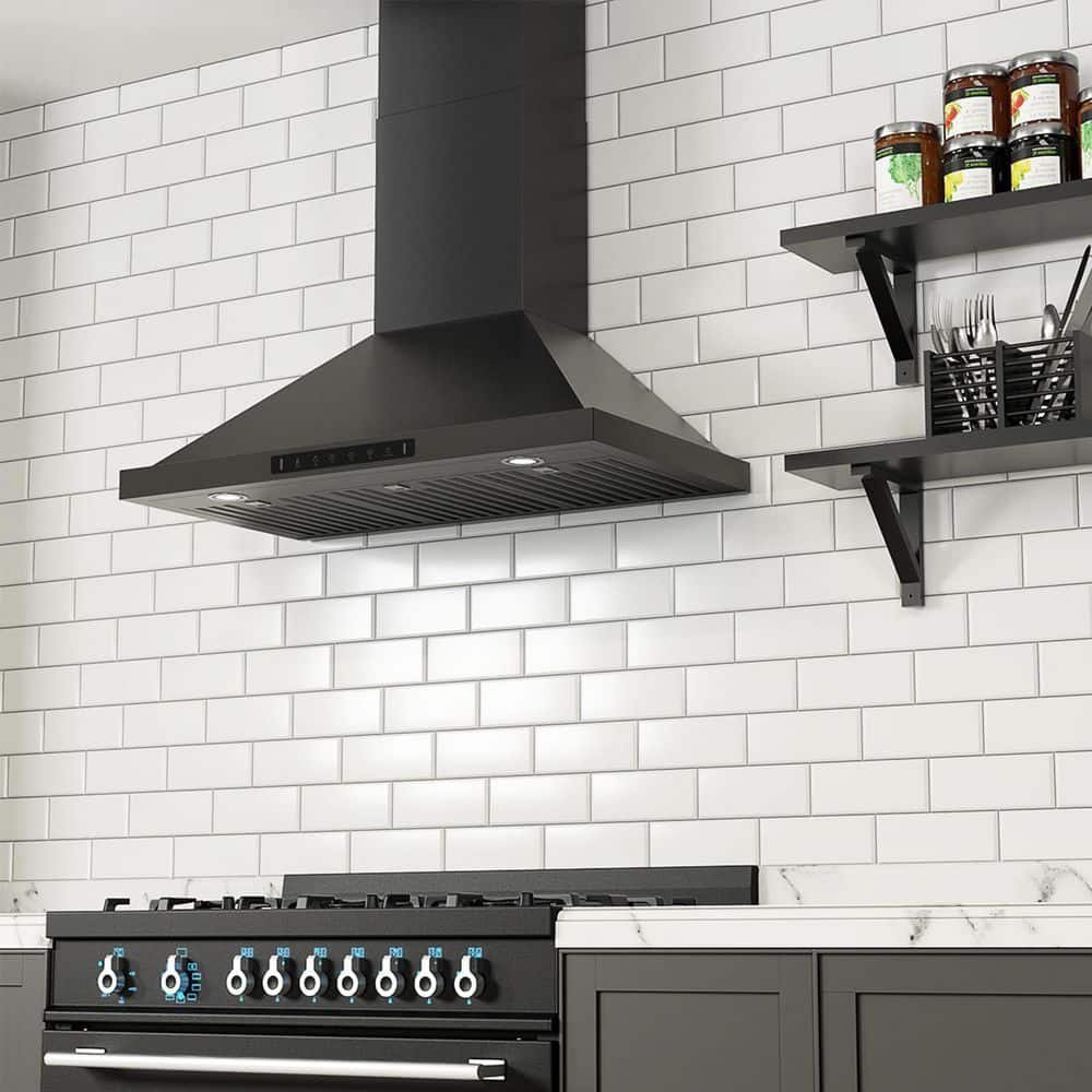 30 in. 600 CFM Ducted Wall Mount Range Hood in Black Stainless Steel with Gesture Control, Charcoal Filters, LED Lights