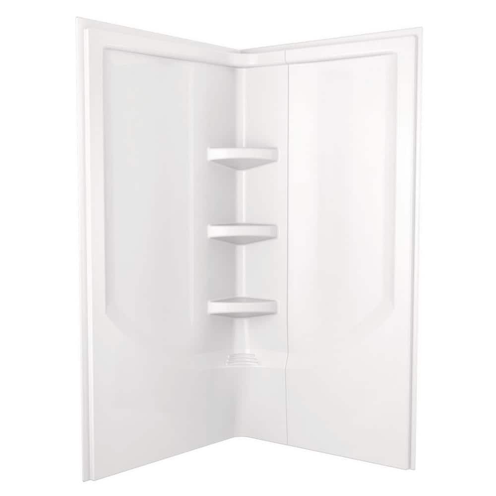 This 38 in. x 73.88 in. 2-Piece Direct-to-Stud Corner Wall in White is a stylish and functional backdrop for your shower. It has 3-generous corner shelves for convenient storage. Its white finish complements all interior styles.