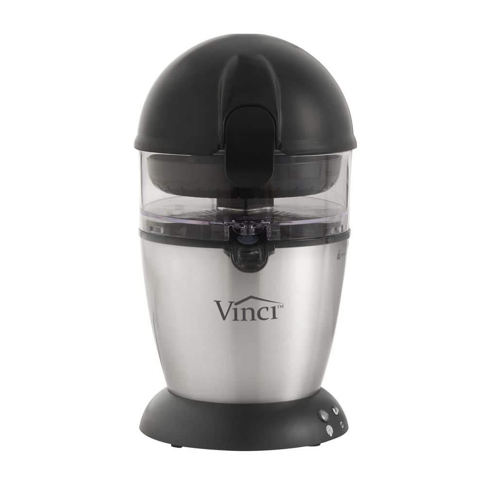 The Vinci Hands Free Citrus JuicerTM is the most advanced home citrus juicer available. With our patented automatic juicing mechanism, all you do is SLICE the fruit in half, PLACE the fruit on the reamer and PRESS the juice button. No need to hold the fruit, the juicing reamer automatically raises and extracts the freshest juice possible in about 10 seconds. Also, our pressure sensitive juicing technology automatically senses the thickness of the rind to ensure you always get the best juice without any bitter flavors that are often introduced when the rind is scraped by the reamer.