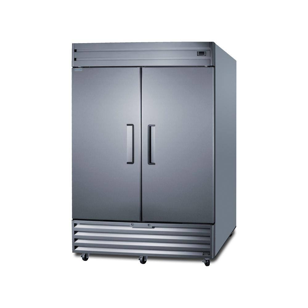 Made in North America, Accucold Commercial products offer the ideal display and storage conditions for foodservice settings, with a TAA compliant design and durable construction for busy commercial environments. Model SCFF436 is a reach-in all-freezer with a self-closing French door swing and nearly 39 cu. ft. of interior storage capacity. It features complete stainless steel construction inside and out, with 6 pre-installed casters for easy mobility. LED lighting offers an efficient presentation and front locks add security as needed. This unit features a high efficiency compressor and rear condenser. The sealed rear offers a better fit and easier cleanup with no exposed coils. Eco-friendly R290a refrigerant helps to ensure a greener footprint compliant with the latest CARB regulations. Inside, the SCFF436 utilizes fan-forced cooling for fast temperature covery and even cold air distribution. Adjustable cantilevered shelving lets you accommodate a variety of sizes to maximize the interior space. This model uses frost-free operation for easy user maintenance, with audible high/low temperature alarms to warn if the unit goes out of range. The SCFF436 is UL-S Listed to NSF-7 commercial standards. For a matching refrigerator, see the SCRR432. Additional sizes and options are available. Browse the full commercial product line for more choices.