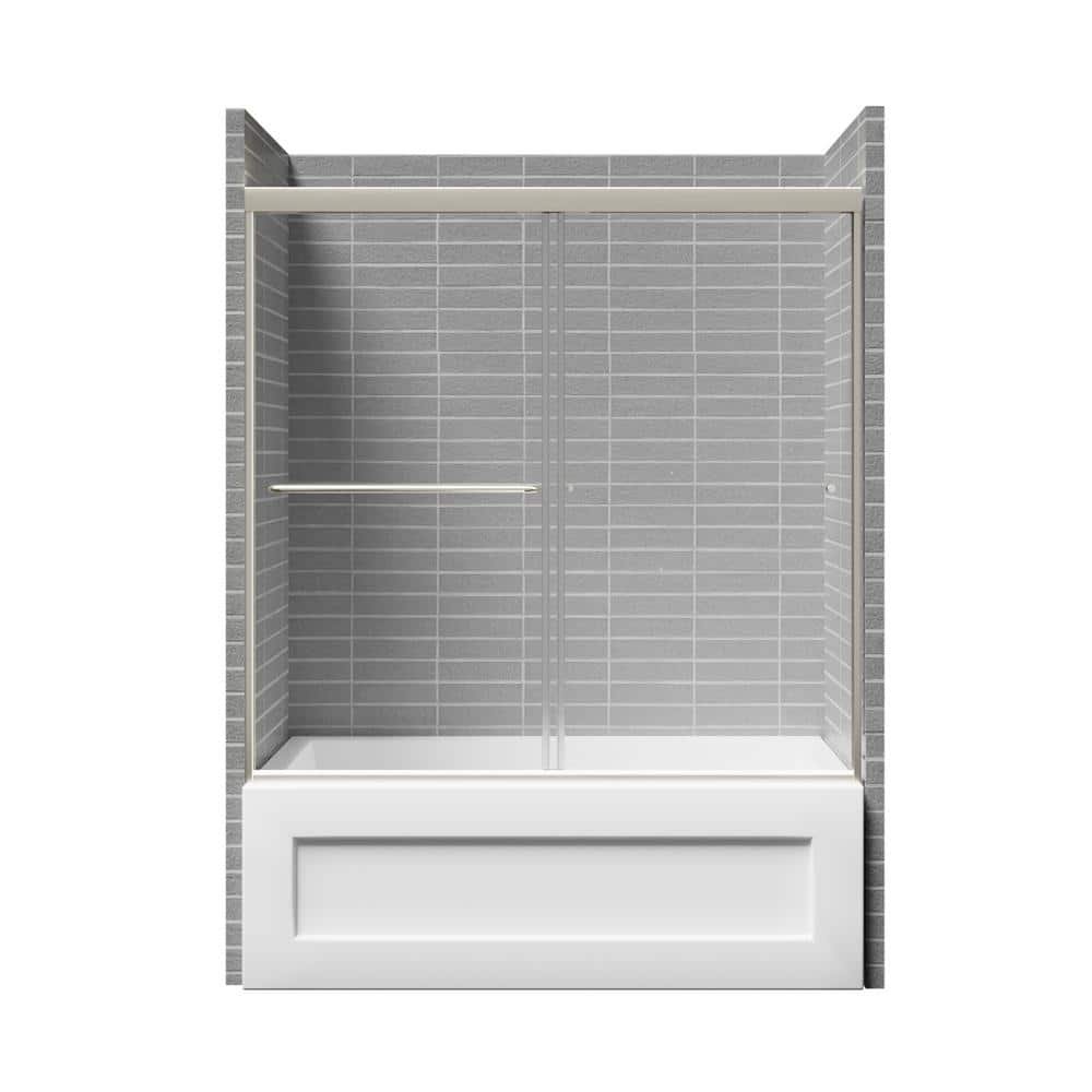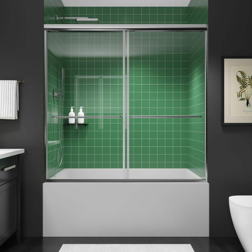Quality construction with elegant craftsmanship to offer the best in contemporary styling and functionality. With its sleek rounded header, top rollers and dual bypass design, this shower door delivers the perfect combination of contemporary look and superior functionality. The 2-clear glass panels showcase your shower’s interior, while the gently contoured towel bar adds a subtle accent. Its precise panel fitting, this door helps eliminate leaks to keep your bathroom tidy.