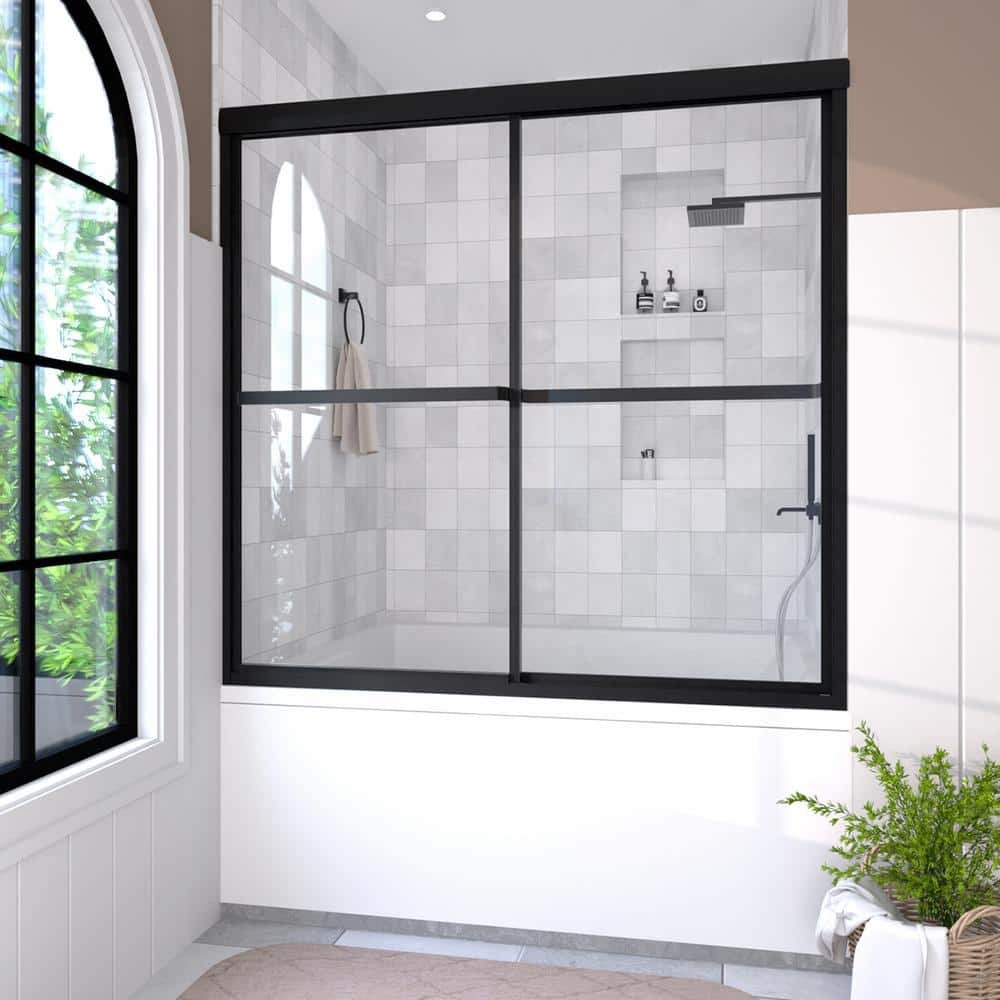 Enhance your bathroom with the Elunir collection from Hermitage Bath, designed to bring elegance and modernity. This collection combines sophistication with traditional American style, featuring 3/16-in. (4mm) ANSI certified clear tempered glass, a smooth-glide hidden wheel roller system, and premium anodized aluminum matte chrome hardware. The Elunir framed alcove tub doors ensure durability and enhance the beauty of your bathroom. Customize your space with bypass opening and width adjustment from 55 in. to 59-1/2 in. All Elunir alcove tub doors include a 5-year limited warranty. Choose Hermitage Bath for high-quality craftsmanship and classic American style. Elevate your bathroom with the Elunir collection and enjoy luxury fused with timeless aesthetics.