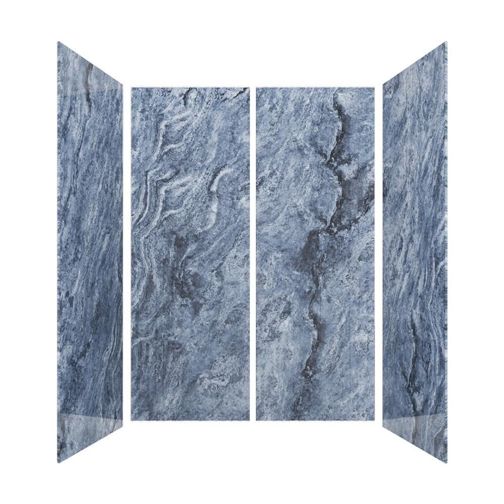 60 in. L x 32 in. W x 84 in. H Glue-Up Alcove Solid Composite Stone 4-Piece Shower Wall Set in Fusion Blue