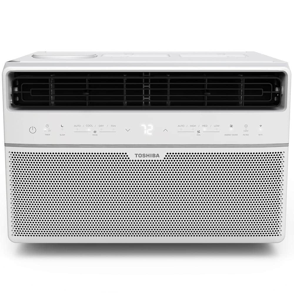 The Toshiba Smart Wi-Fi 8,000 BTU/h window air conditioner has the power to cool up to 350 sq. ft. with a sleek design, a unique touch control interface and a compact remote control. Smart functionalities include a smartphone app to control your AC through Wi-Fi from anywhere, at home or through the cloud or even using your Alexa or Google Home assistants with the Toshiba AC Skill. The unit fits most windows with the easy to use installation panel kit for quick setup and offers 4 speeds for cooling, circulation or dehumidification, including a fully automatic mode and 4-way air direction control. To save energy, the air conditioner offers an ECO mode, while other intelligent features such as the 24-hour Timer, Sleep mode and the Filter Clean warning help you to personalize your comfort. Cool, dehumidify or circulate the air in the space you need and get peace of mind with a 1-year warranty by Toshiba.