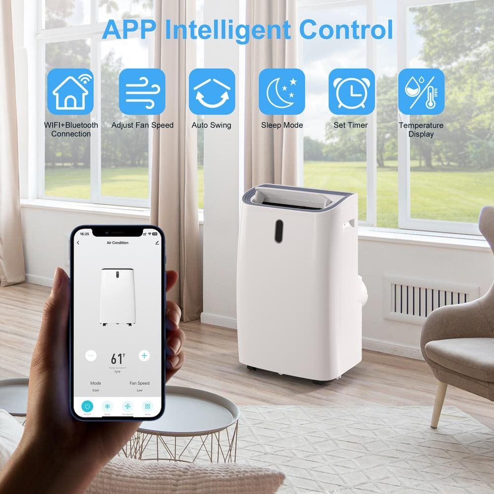 9,500 BTU Portable Air Conditioner Cools 700 Sq. Ft. with Heater, Dehumidifier and Wi-Fi in White