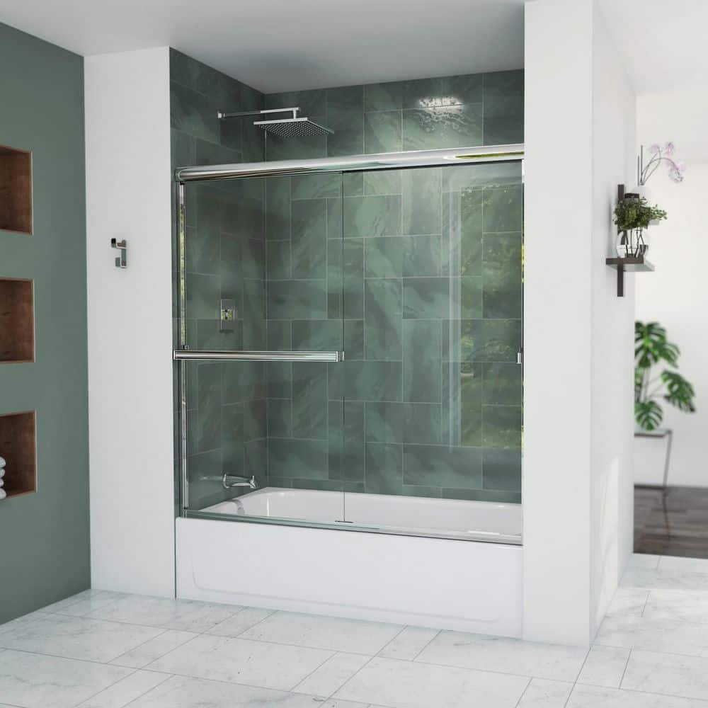 Aloha 56 – 60 in. W x 58 in. H Semi-Frameless Sliding Shower Door/Enclosure Tub Door in Chrome with Clear Glass