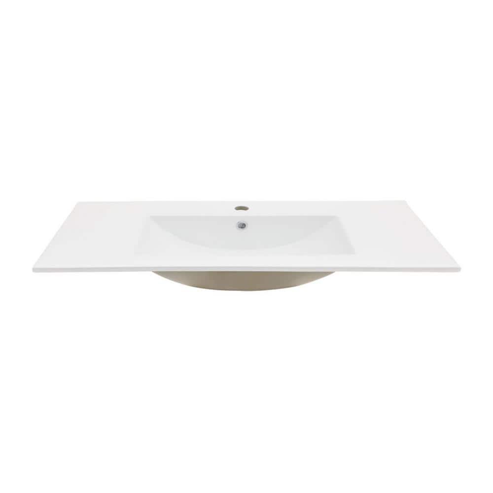 36 in. white rectangular single vanity top is a stylish and practical addition to any bathroom. Featuring a sleek, modern design, it comes with a single pre-drilled faucet hole and an overflow to prevent water spills. The high-quality, durable material ensures longevity and is easy to clean, maintaining its glossy white finish. Perfect for a contemporary bathroom upgrade, this vanity top offers both elegance and functionality.