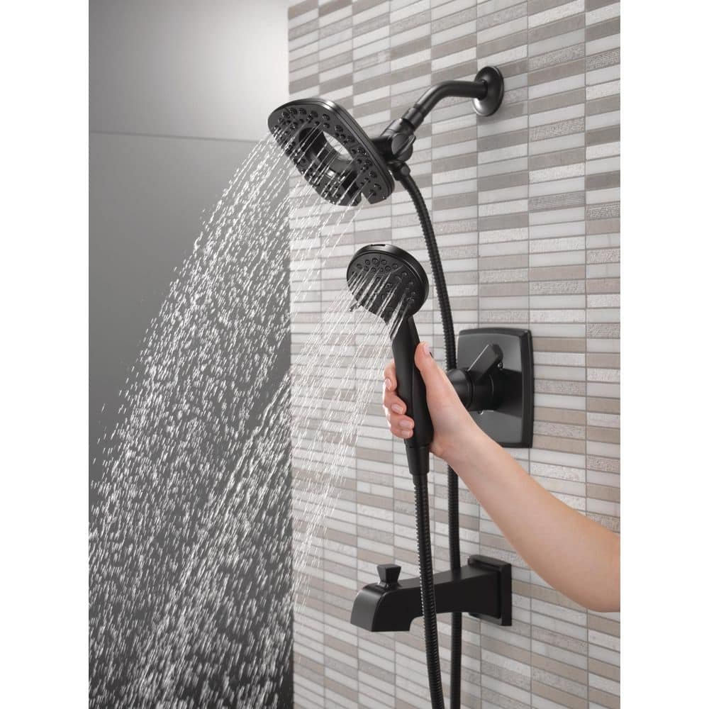 The sleek, angular lines and soft edges of the Ashlyn Bath Collection create a modern appeal at an attractive price. The Delta In2ition 2-in-1 Shower features a detachable hand shower which can be used separately from or simultaneously with the shower head. Delta showers with Monitor pressure-balance valves are engineered to make sure you don’t experience a sudden and possibly unsafe change in water temperature as a result of running water elsewhere, such as using a dishwasher, flushing a toilet or running a washing machine. With separate handles for volume and temperature control, this Delta tub/shower provides a more refined showering experience. Simply set the water at your preferred temperature and turn the shower on or off with the volume control handle – without interrupting your set temperature. The MultiChoice Universal Valve gives you the flexibility to upgrade the style and functionality of your shower without altering the plumbing behind the wall. Delta WaterSense labeled faucets, showers and toilets use at least 20% less water than the industry standard – helping you save water without compromising performance. You can install with confidence, knowing Delta products are backed by our Lifetime Limited Warranty.