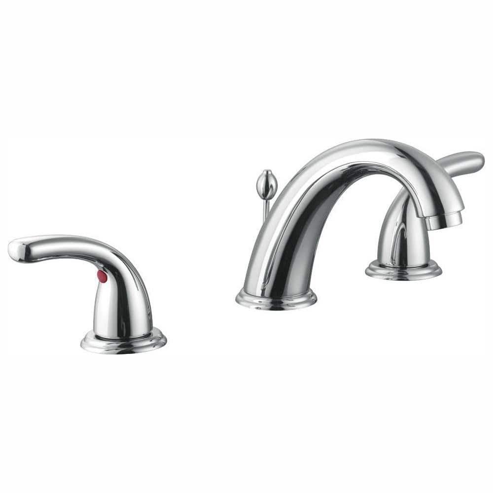 The Builders 8 in. Widespread 2-Handle High-Arc Bathroom Faucet from Glacier Bay offers an attractive curved design with smooth, soft lines. WaterSense certified, this efficient faucet features a 1.2 GPM flow rate to help reduce water use and ceramic disc cartridges to prevent drips. Easy to use with dual lever handles and a high-arc spout, it is finished in chrome and designed for easy installation. Featuring the Glacier Bay exclusive ClickInstall drain for quick and simple installation. Pair with other pieces from the Builders collection to create a stylish theme throughout your bathroom.