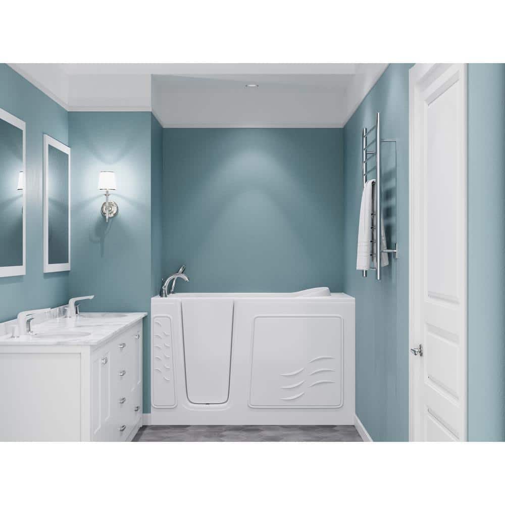 The 5 ft. Left Drain Walk-In Bathtub in White provides a safe and independent bathing experience in a cost-conscious package. Using the latest in tub-crafting techniques and industrial-grade materials, this fiberglass walk-in tub from Universal Tubs offers an impressive array of features to melt away your worries and aches. With an ADA-compliant molded bathing seat, safety grab bar and low-threshold entry, this tub offers the convenience and peace of mind needed for bathers of all ages to truly enjoy a luxurious soak.