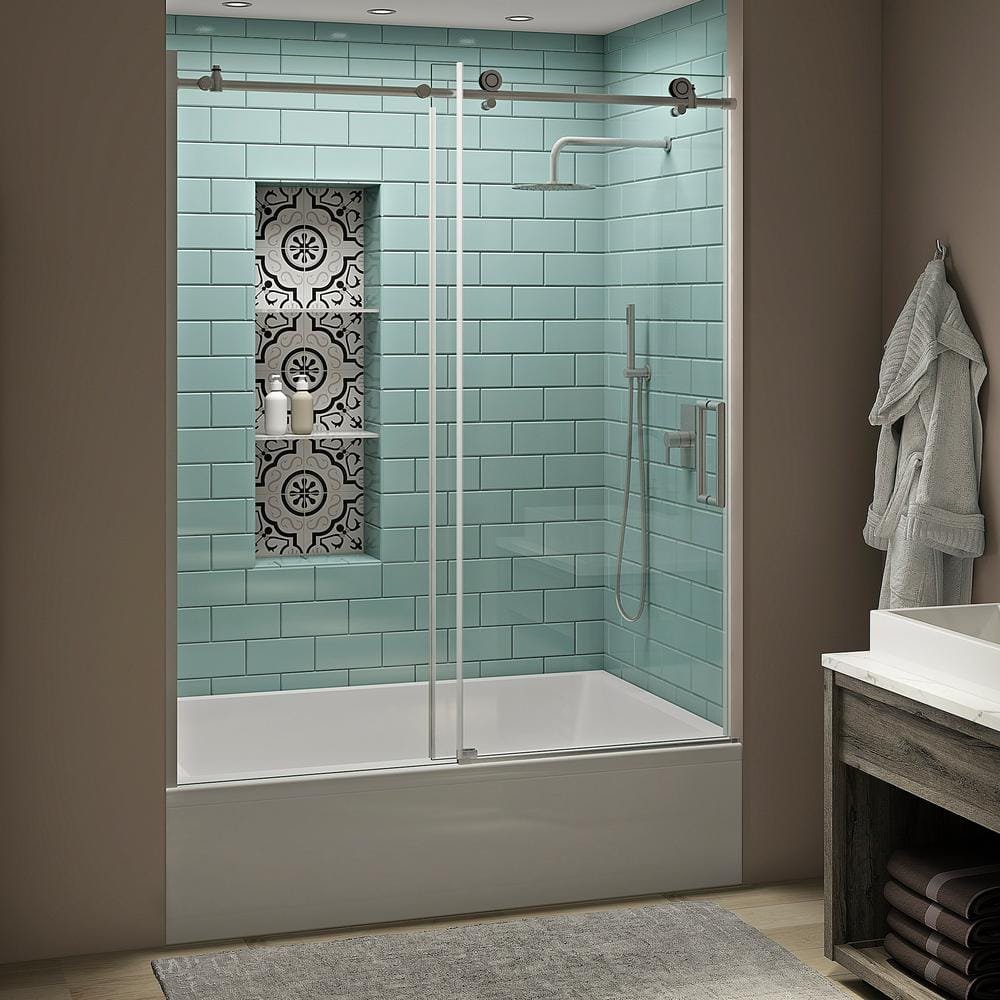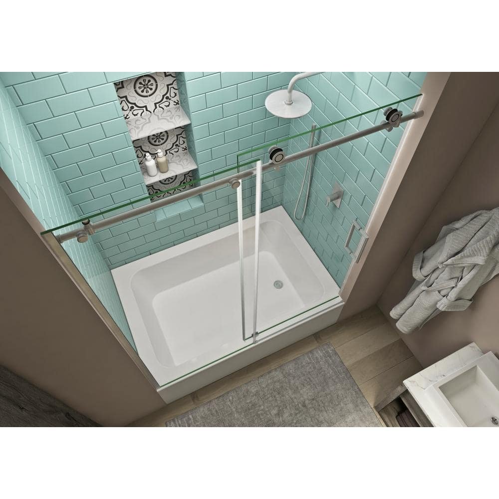 The 60″ x 70″ Aston Coraline Frameless Sliding Tub Collection shifts the trend of boring bathtub doors with its beautiful aesthetic and high-quality design work. Constructed of tempered, thick 3/8″ (10mm) ANSI Z97.1 clear glass with professionally applied water-repellant, hygienic and stain resistant StarCast coating, the Coraline Frameless Sliding Tub Door is offered in your choice of desirable hardware finishes on stainless steel, double-sided vertical door handle providing effortless entry and exit, and up to a 1″ out of plumb adjustability, ensuring a water tight perfect fit. Reinvent your bath instantly with the Coraline.