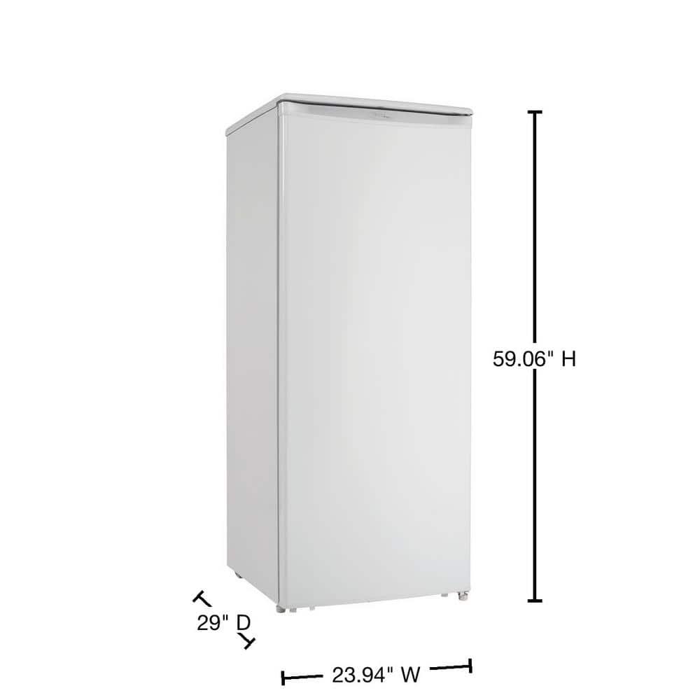 When it comes to storage space for your family’s favorite frozen food items, size really can matter. This is why the DUFM101A1WDD1 upright freezer by Danby is ideal for those households with plenty of mouths to feed. This full-sized model is quite spacious as it provides 10.1 cubic feet (287 liters) of interior cooling area and offers a convenient and easy-to-maintain manual defrost system. The Energy Star rated appliance is designed to reduce your power bills by cutting back on the amount of electricity used. This chic unit is operated by a state-of-the-art mechanical thermostat and comes with three strong and sturdy wire shelves as well as four roomy door shelves. The clever reversible door hinge means you can adjust the freezer for either left or right-handed opening. This attractive and dependable model also comes with a friendly 5 year warranty on parts and labor with convenient in-home service.