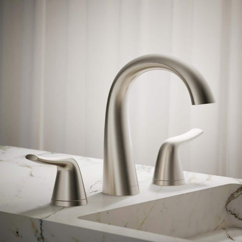 Inspired by the gentle flow of water, the Easmor widespread bathroom sink faucet will bring a sense of calm to any space. The Easmor bathroom sink faucet has a transitional style with soft, pebble-inspired handles that complement its fluid form and allow for smooth operation, while ceramic disc valves offer a leak-free and drip-free experience. It has a lifetime limited warranty.