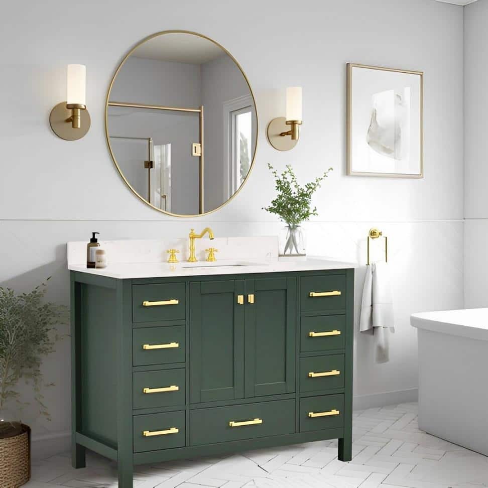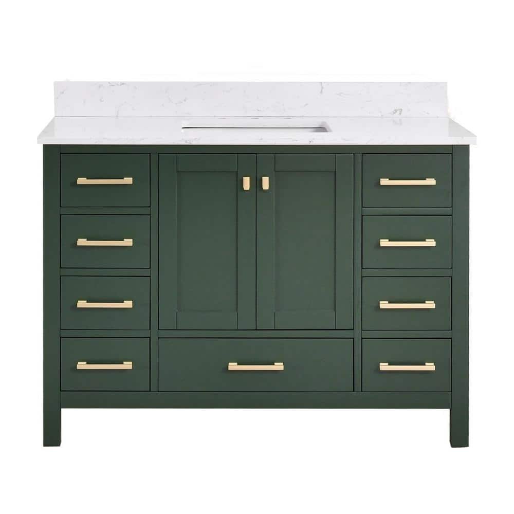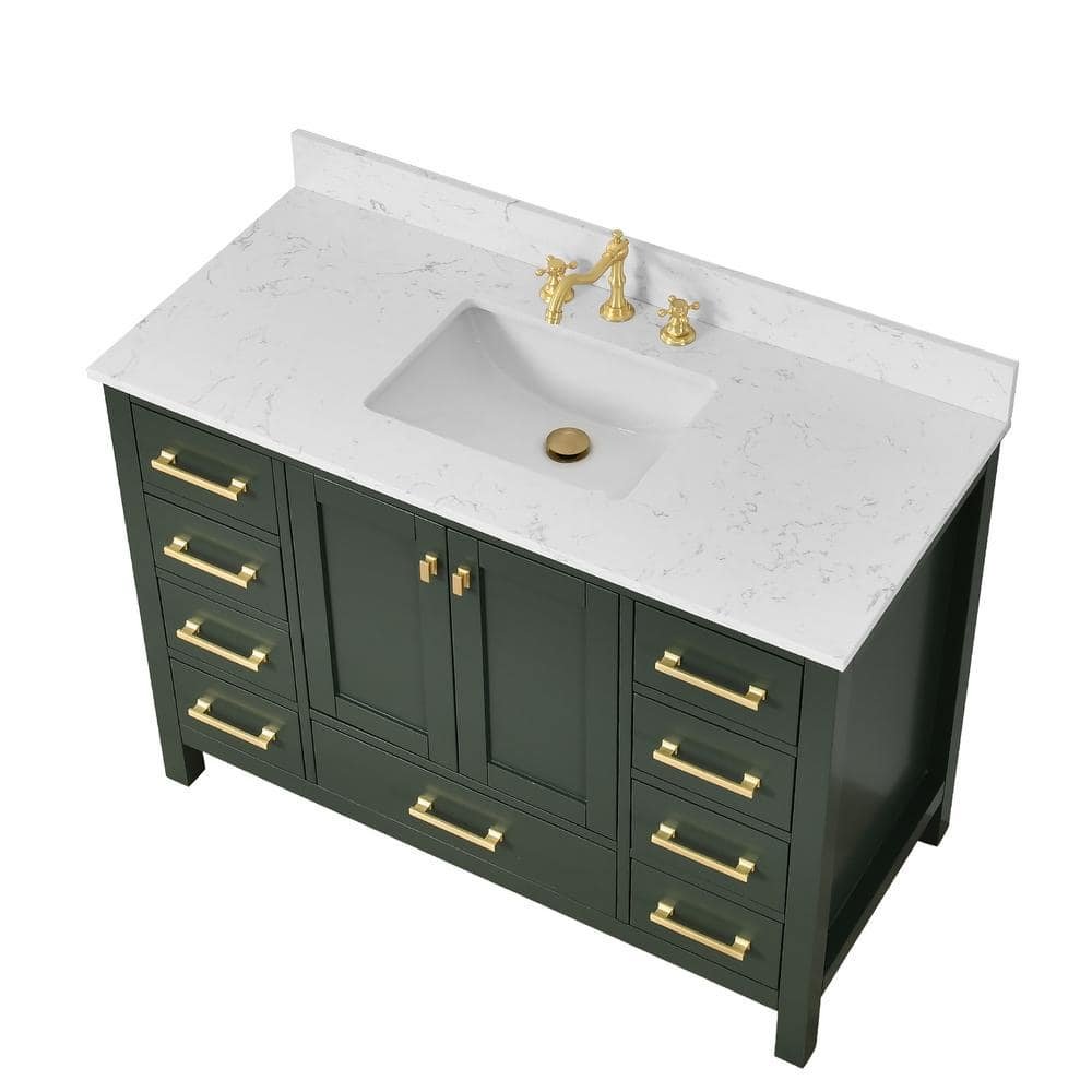 GlamourAura 48 in. W x 22 in. D x 39.24 in. H Single Sink Bath Vanity in Forest Green with White Engineered Stone Top