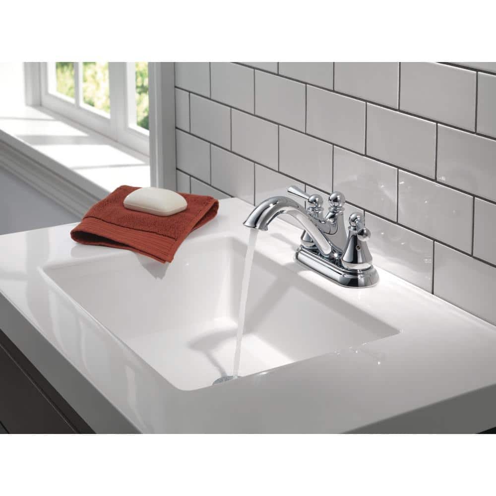The graceful arc and elegant detailing of this bathroom faucet from Delta recalls classic, traditional style in a timeless chrome finish. Its high-arc spout provides exceptional clearance, while the dual handles offer total control over temperature and water flow. Delta is committed to supporting water conservation around the globe and has been recognized as WaterSense Manufacturer Partner of the Year in 2011, 2013, and 2014.