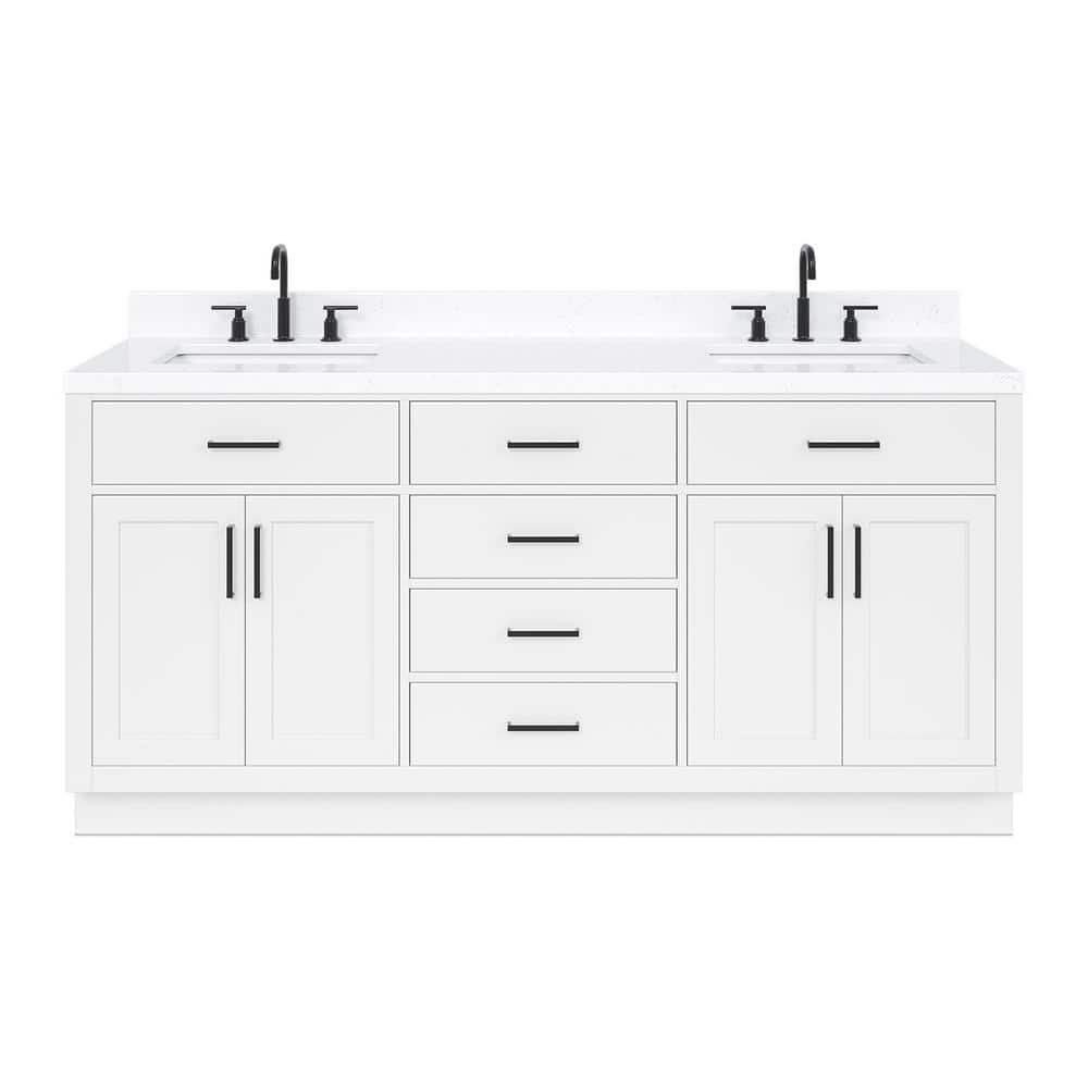 Hepburn 72 in. W x 22 in. D x 36 in. H Double Sink Freestanding Bath Vanity in White with Carrara Quartz Top