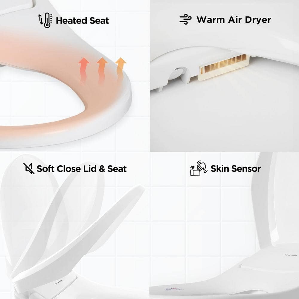 The Hulife Electric Bidet Seat for Elongated Toilet and Some French Curve Toilet is a semi-luxury seat at a low cost. Its sleek design was made with top-quality components and loaded with intelligent, smart features. It is easy to install and allows you to adjust the water temperature, water pressure, stainless steel nozzles position, seat temperature, and air dryer temperature which provides a personalized experience. Simply control your functions with the soft push on the Wireless Remote control. Our 3-in-1 nozzle provides self-cleans before and after each wash. LED Nightlight helps you to use the toilet without toilet light. The lid and seat are both soft closing.