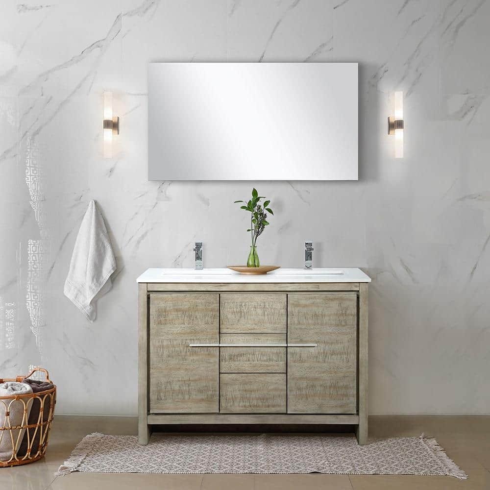 Be the first to review “Lafarre 48 in W x 20 in D Rustic Acacia Double Bath Vanity, White Quartz Top, Gun Metal Faucet Set and 43 in Mirror”