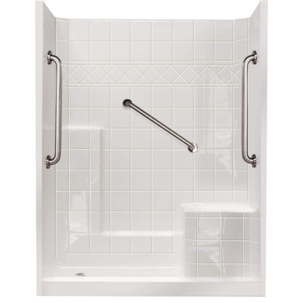 The Ella 3-Piece low threshold walk in shower stall with a molded seat are commonly used for remodeling. Ella walk in showers offers a seamless design with a 4 in. high threshold to provide easy access. Superior Finish – Acrylx applied acrylic offers a high gloss, truer white finish resulting in fewer scratches, cracks and chips for a longer lasting finish that looks factory new look years after installation. Structural Durability – whether in a warehouse or a new house, an Acrylx product is durable and will resist scratching, cracking and chipping to maintain a “factory-new” finish over its lifetime. Easy to Maintain – The finish material is less porous which creates an easier to clean surface that is less susceptible to chemicals, enhancing value and reducing everyday issues. Features a stylish simulated tile pattern for the walls, a shelf and foot ledge. and an anti-slip texture for the shower base floor. The molded shower seat is spacious offering a comfortable seating area. Due to the shower wall reinforcement, the wall is durable enough to withstand the installation of additional accessories, such as grab bars, seats and shower doors. Available in Basic(shower only) and one package called Liberty with 3 loose Stainless Steel Grab Bars offered 24 in. and 36 in. L. The shower is manufactured in the United States, with a Lifetime Limited Warranty.
