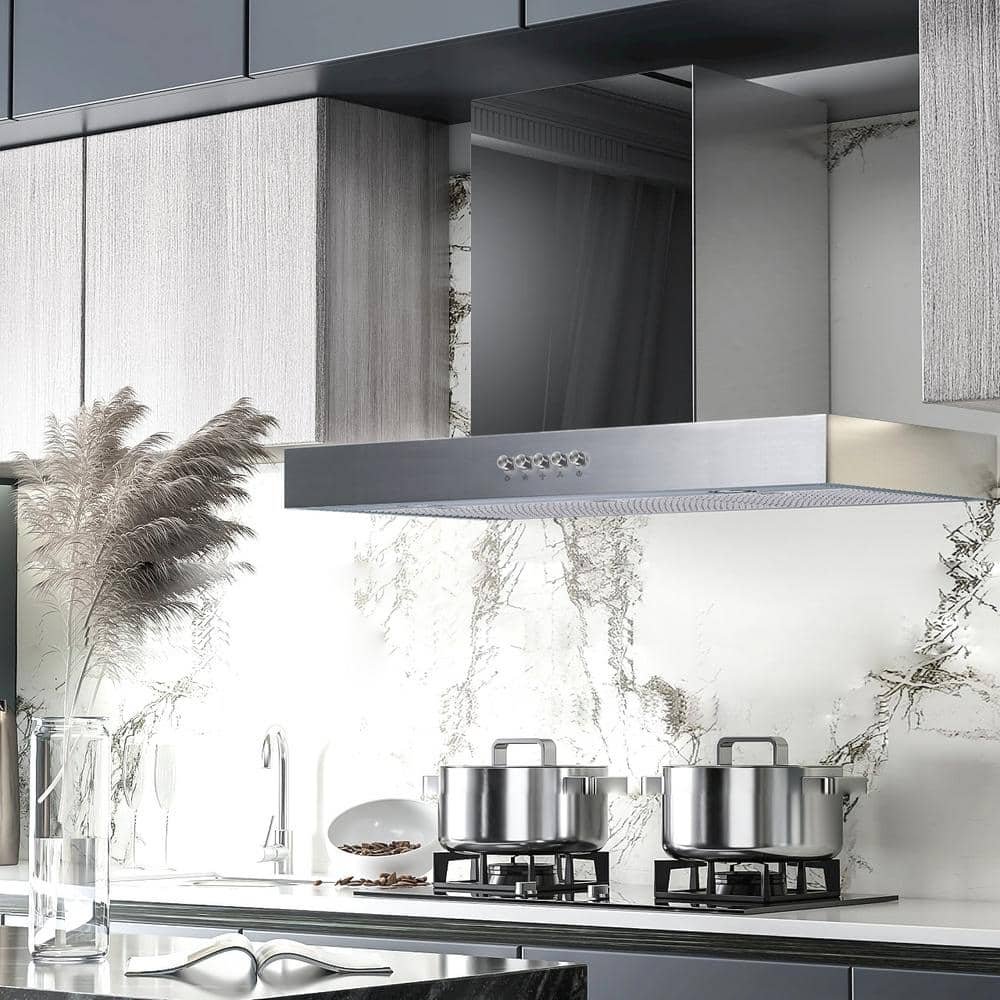 Lora 30 in. 350 CFM Convertible T-Shape Wall Mount Range Hood in Stainless Steel with Charcoal Filters and LED Lighting
