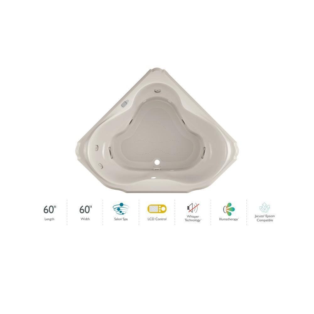 MARINEO 60 in. x 60 in. Neo Angle Combination Bathtub with Center Drain in Oyster