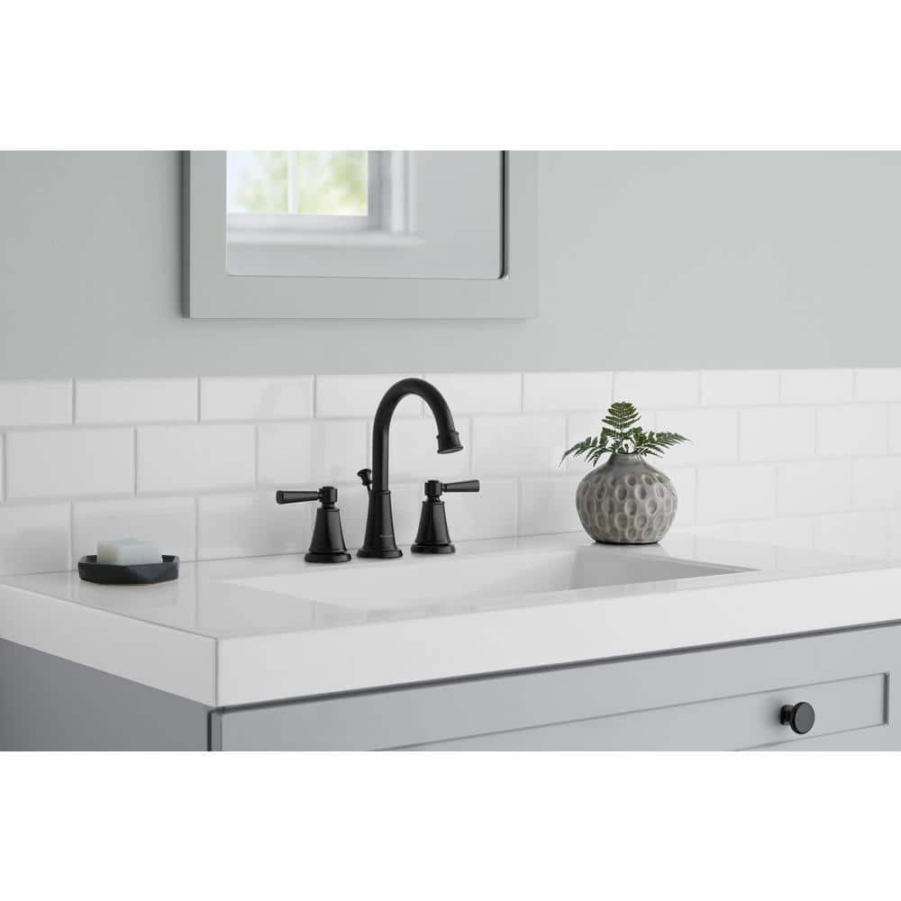 The graceful curved high-arc spout and beautiful lines of this Glacier Bay Melina 8 in. Widespread 2-Handle High-Arc Bathroom Faucet in Matte Black will add a touch of elegance to your bathroom. Whether you are updating a bathroom or installing for a new build this is the 1 for you. Premium components that are skillfully engineered ensure superior performance.