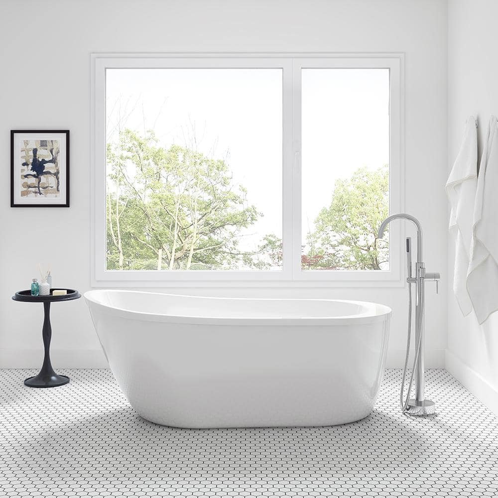 Update your bathroom with polished chrome accents of this Milly Single-Handle Freestanding Roman Tub Faucet. This beautiful faucet can be used on any freestanding tub and mounts directly to the floor. Designed to complement modern and contemporary bathrooms, this piece will add an elegant touch to your space while offering long-lasting style and functionality.