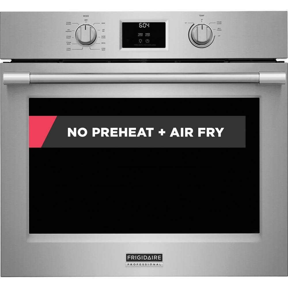 The Frigidaire Professional 30″ Single Wall Oven with Total Convection, features our new Total Convection system, which enables cooking modes like No Preheat, Air Fry, Slow Cook, Steam Bake, Steam Roast, Convection Bake and more! Also includes a convenient temperature probe and the ReadyCook Air Fry Tray. Plus, enjoy our fingerprint resistant, Smudge-ProofStainless Steel finish.