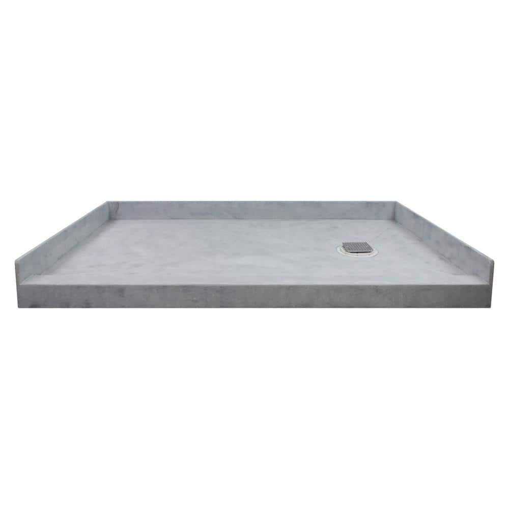 Ready to Tile 60 in. L x 30 in. W Single Threshold Alcove Shower Pan Base with Right Drain in Dark Grey