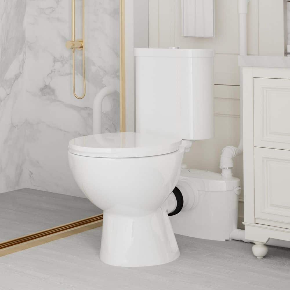 Our state-of-the-art two-piece macerating toilet with built-in 600W macerating pump. This back discharge toilet is not limited to bathrooms, but can also be used in kitchens, basements, and more. It closes the lid slowly without noise, no longer afraid of waking up others when going to the toilet at night.