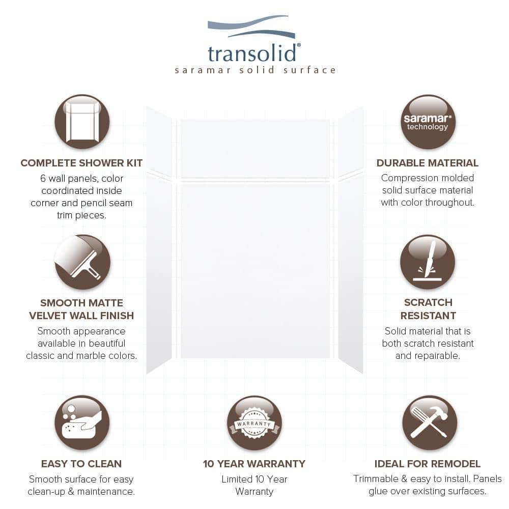 Saramar 60 in. W x 96 in. H x 36 in. D 6-Piece Glue to Wall Alcove Shower Wall Kit with Extension in. White Velvet