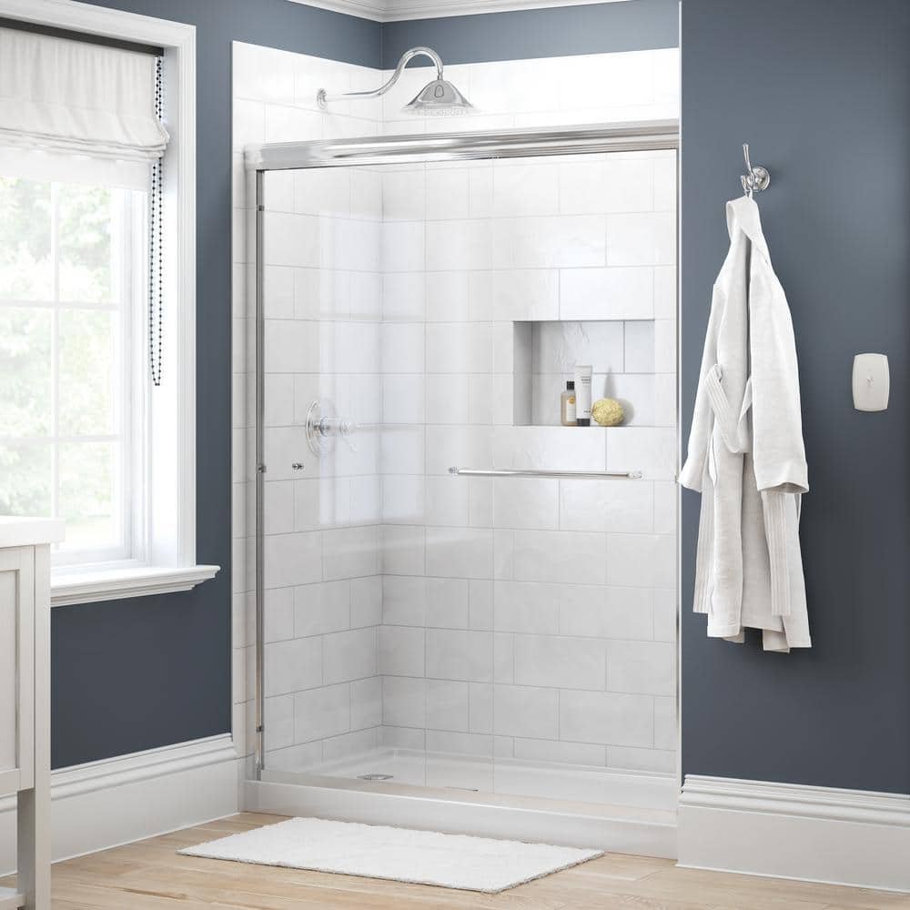 Simplicity Traditional 50-1/8 to 59-3/8 in. W x 70 in. H Semi-Frameless Sliding Shower Door, Chrome, Clear Glass