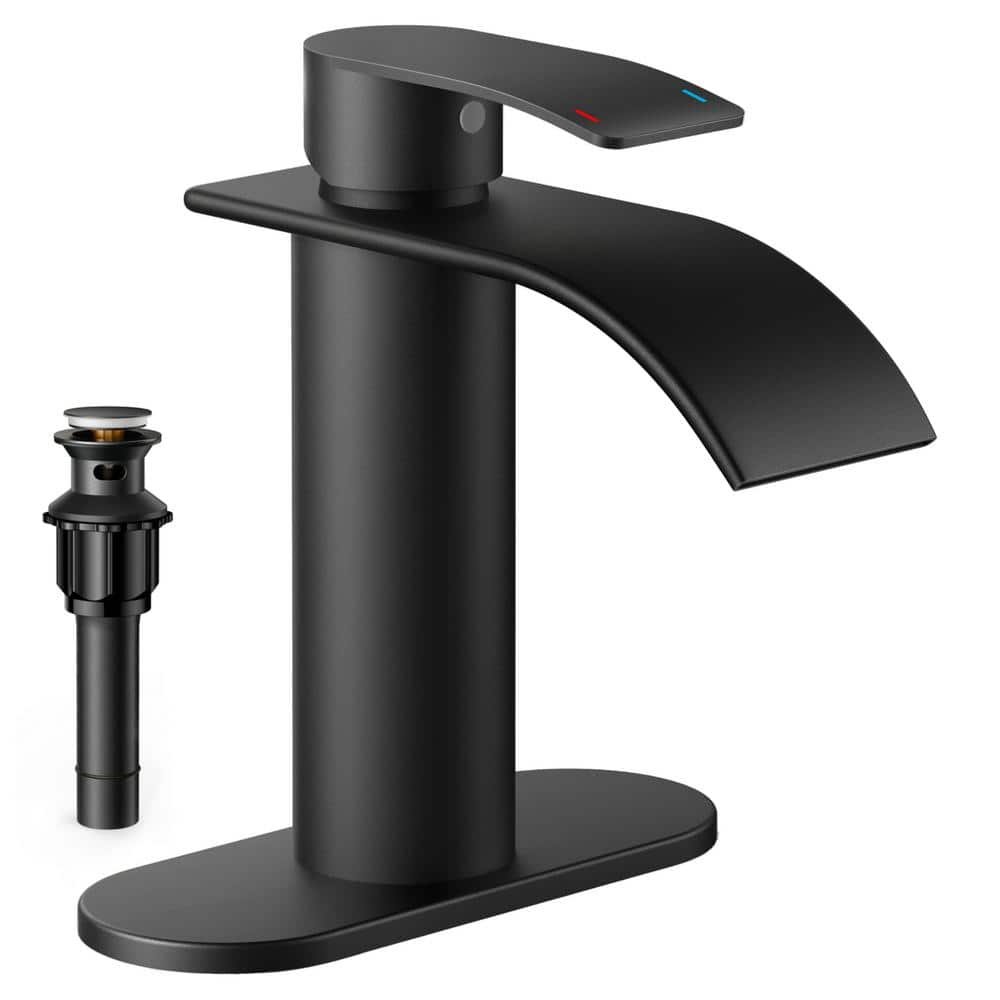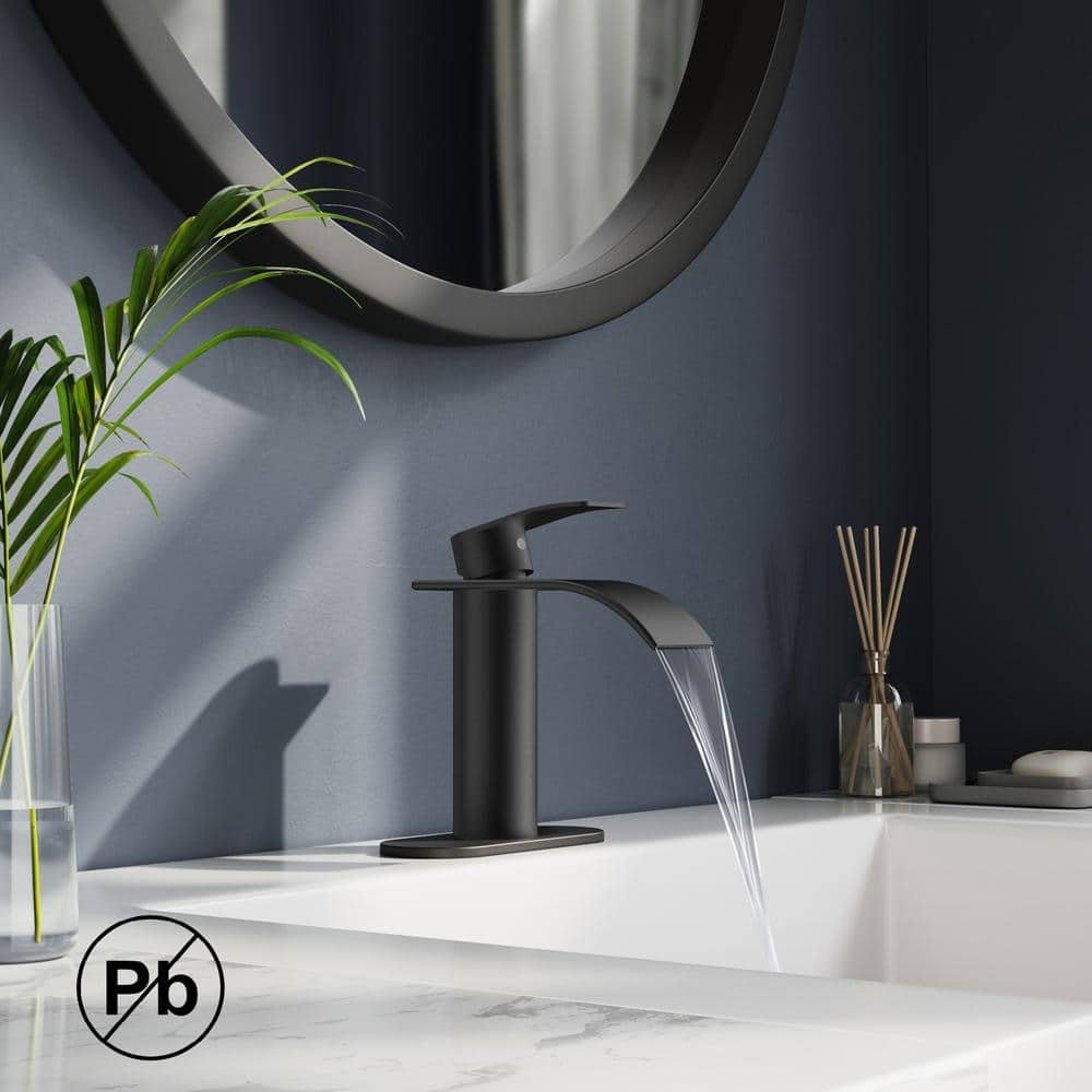 This single-handle bathroom faucet features a waterfall flow design with smooth, simple lines that complement modern decor in the bathroom and make daily hand washing a comfortable experience. The faucet is made of solid brass and comes with a premium ceramic disc valve cartridge that ensures long-lasting drip-free use. It offers unparalleled durability. In addition, the bathroom faucet comes with a deck plate that fits both 1 and 3 holes and can be easily installed in just 15 minutes.