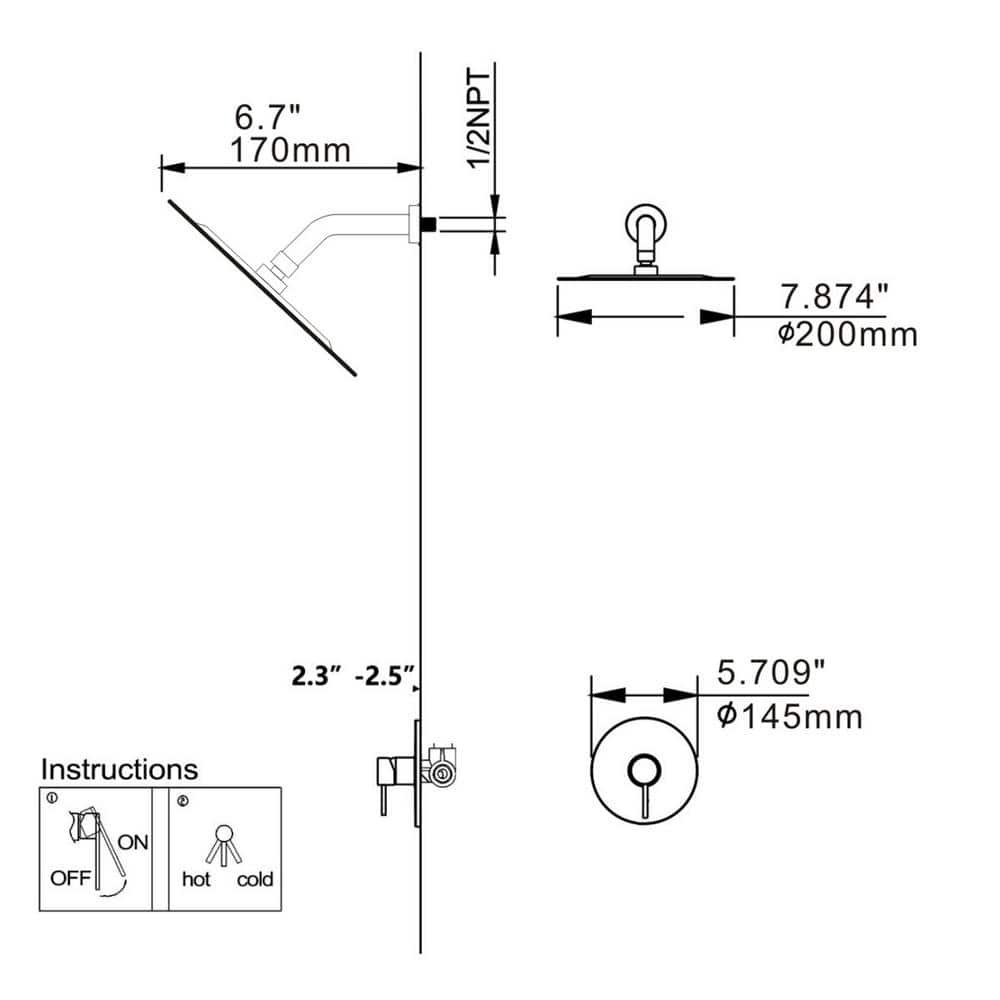 The shower faucet with a rough-in valve has a modern design and an ample water flow of up to 1.5 GPM. With 1-handle level control, you can adjust the flow rate easily. Besides, the shower head is made of brass, which is durable for long-term use.