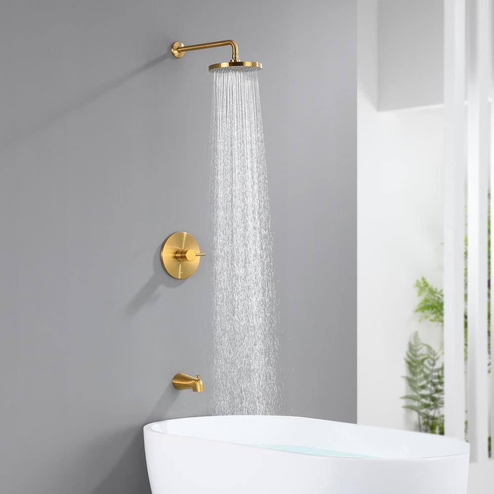 The SS-C02 series Single Handle Shower Faucet with Tub Spout from LUXIER boasts a sleek, modern design that adds contemporary elegance to any bathroom. Available in Brushed Gold and Matte Black finishes, this faucet complements a variety of styles with ease. The single handle provides smooth, easy control over temperature adjustments, while the luxurious rainfall shower head delivers a soothing, spa-like experience that mimics the gentle sensation of rain for a refreshing and invigorating shower. This set includes the shower arm, trim, valve, and tub spout, offering a complete solution. It is WaterSense compliant, ensuring water conservation without sacrificing performance. Plus, you can buy with confidence; LUXIER provides a limited lifetime warranty on this product.