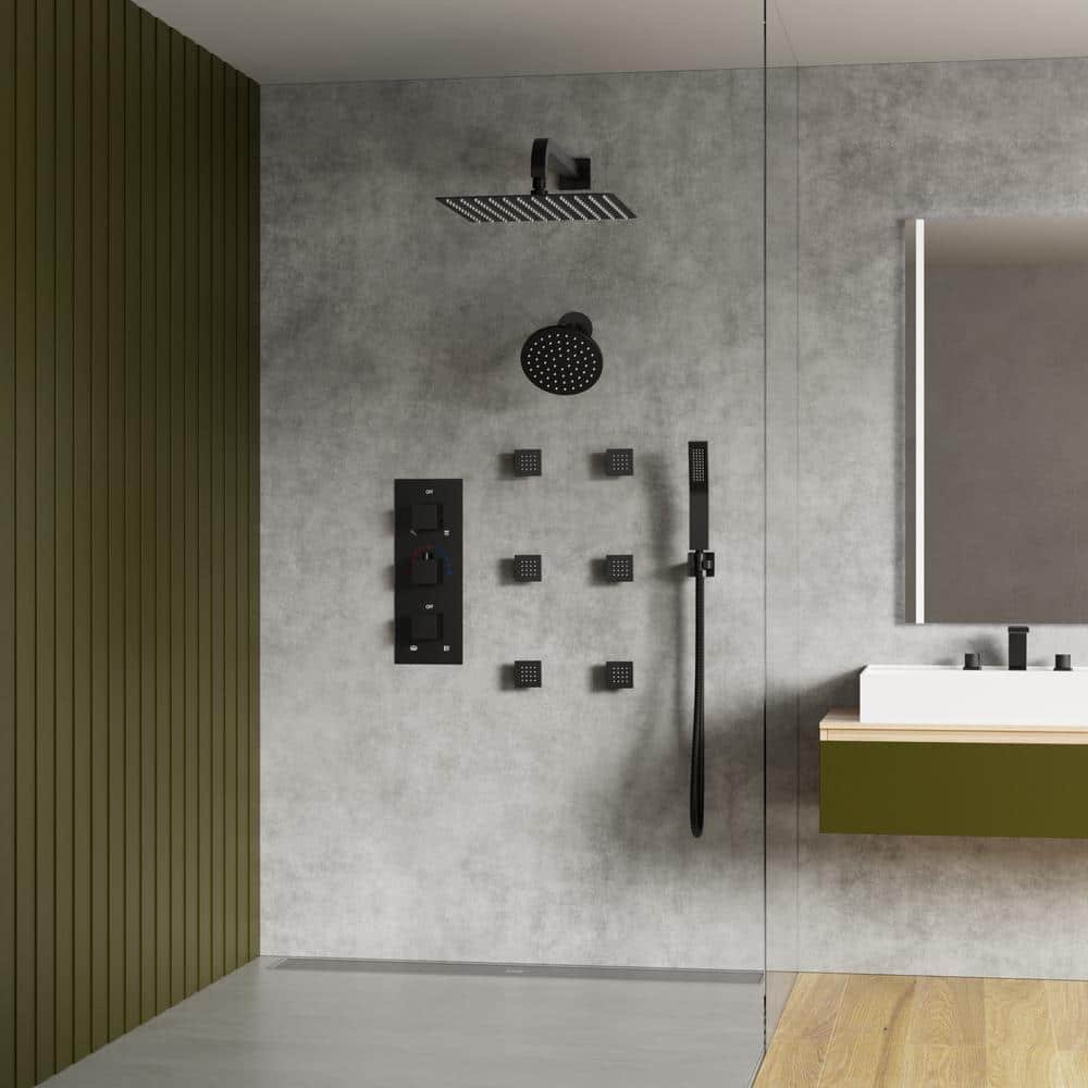 CRANACH This dual showerhead shower is made of solid copper all over, and the upgraded thermostatic valve is made of Vernet thermostatic rod, a well-known French brand, which further enhances the function of the anti-scalding device, so you don’t have to worry about the shock caused by the sudden interruption of hot and cold water. The biggest highlight of this shower is the dual overhead spray design. The 12 in. large overhead spray has a large shower coverage to enjoy a full-body shower, and the 6 in. small overhead spray can be adjusted in height during installation to achieve a quick shower without getting your hair wet, and multiple spouts can be combined according to preference. Choose CRANACH for cUPC certification and reliable customer support and lifetime warranty.