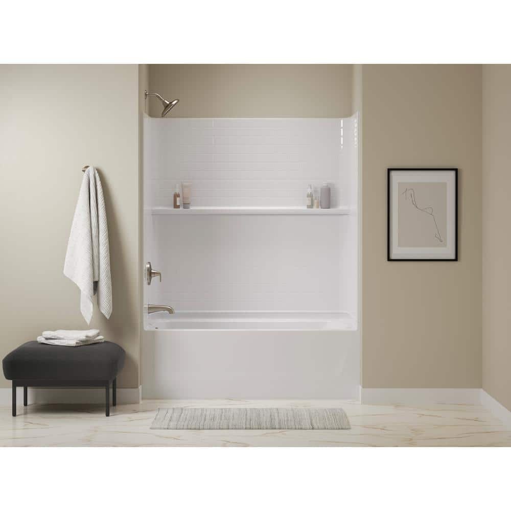 Update your bathing routine with the Traverse Subway Tile wall set. Featuring contemporary subway tile design with a sleek shelf, it has ample storage space for your shampoo bottles. Built of solid Vikrell for material strength, durability and lasting beauty, it features a durable, smooth, high-gloss finish that’s easy to clean. Tongue-and-groove modular design allows for easy installation during any phase of construction.