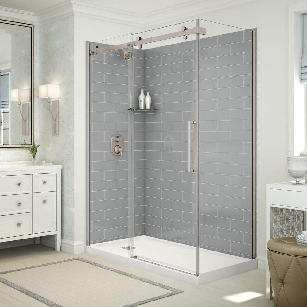 Utile Metro 32 in. x 60 in. x 83.5 in. Left Drain Corner Shower Kit in Ash Grey with Brushed Nickel Shower Door