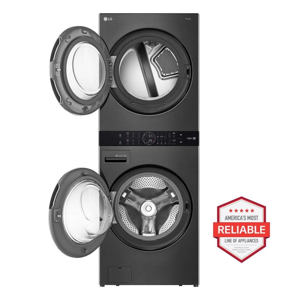 Full-size and fully featured, with the washer on the bottom and dryer on top, the sleek single unit LG WashTower takes up half the space, giving you room to add a sink, a folding table or whatever you like. But unlike conventional stacked pairs, LG’s exclusive Center Control panel is perfectly positioned with both washer and dryer controls at just the right height. Built-in intelligence makes laundry less of a chore by taking out the guesswork, while top-of-the-line innovations put advanced cleaning power within reach.